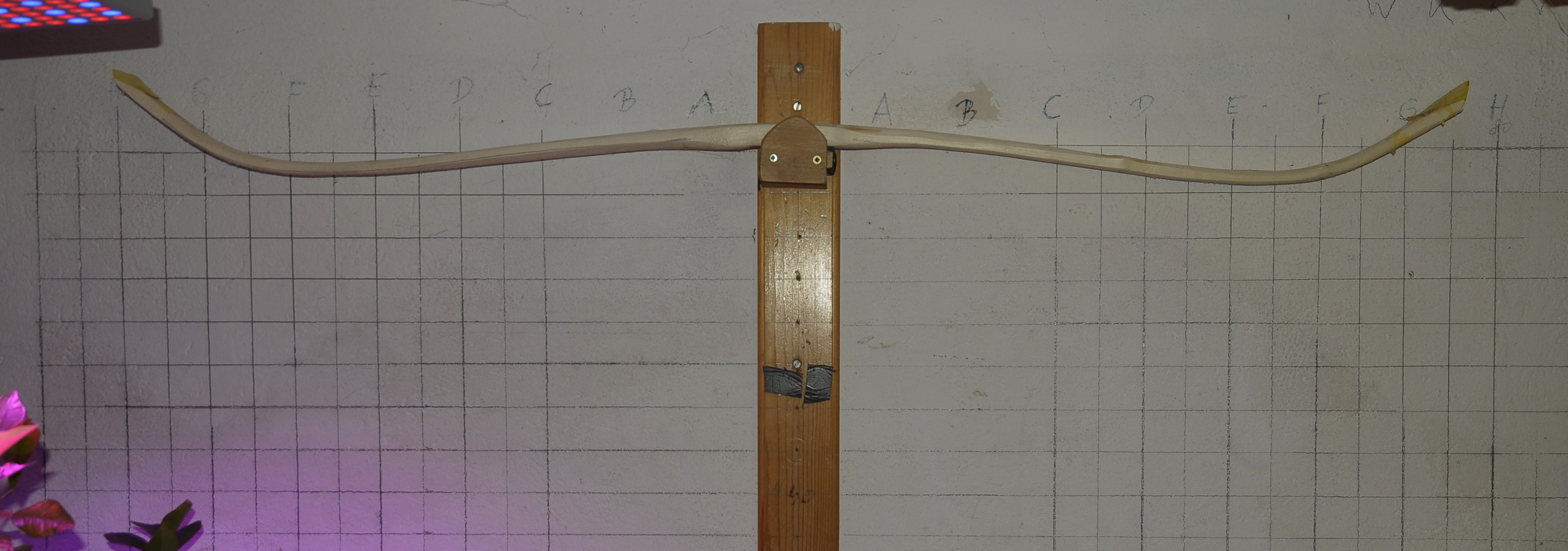 Mein Ziel war ja ein laminierter Scheibenbogen mit ca. 35#, das schaff ich nicht, ich lass ihn jetzt bei 50 plus.