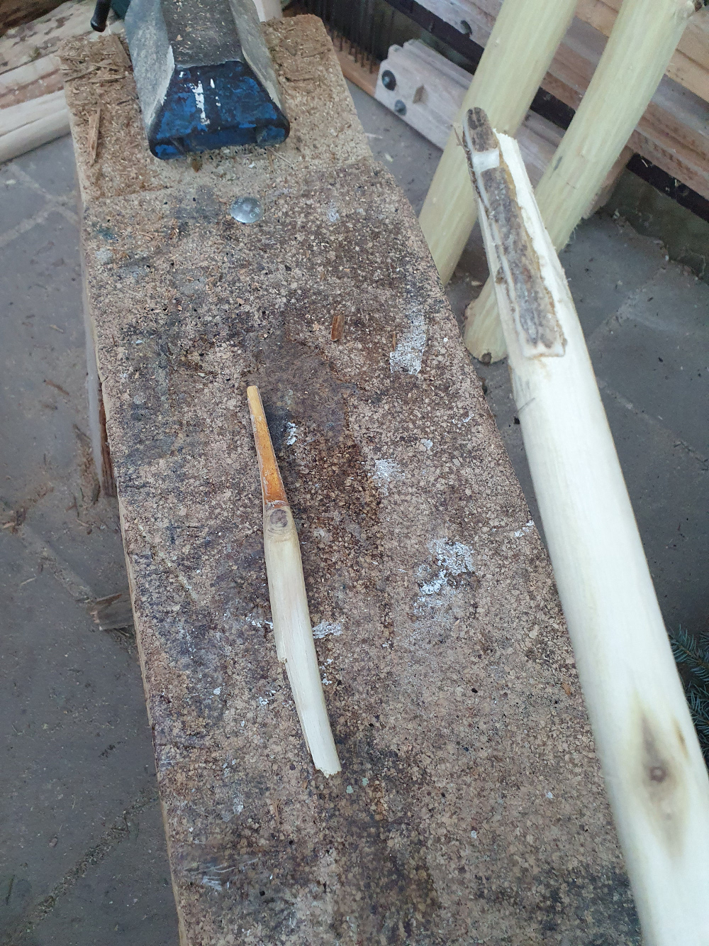 sehe ich auch so wie mein Kollege, besorg dir einen schönen geraden Haselnuss Sapling, du hast ja einen kleinen Holzofen, da ist der in ein paar Tagen fertig.