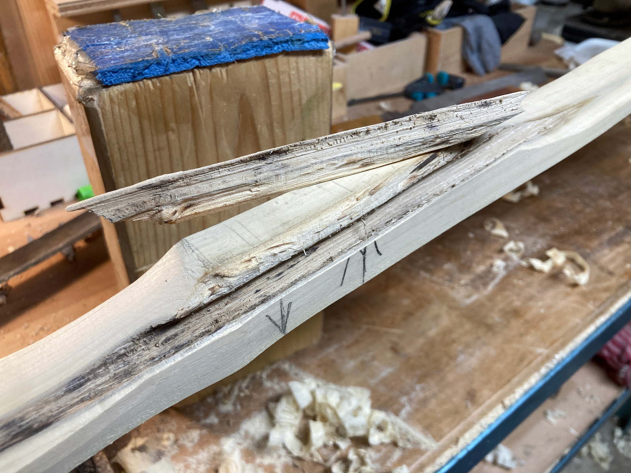 Der Hartriegel hat schon Overlays und ich habe ihn gestern das erste mal auf den Tillerstock gelegt. Allerdings machen mir zwei Totäste Sorgen. Wie würdet ihr damit umgehen, Epoxy einföhnen und gut iss?