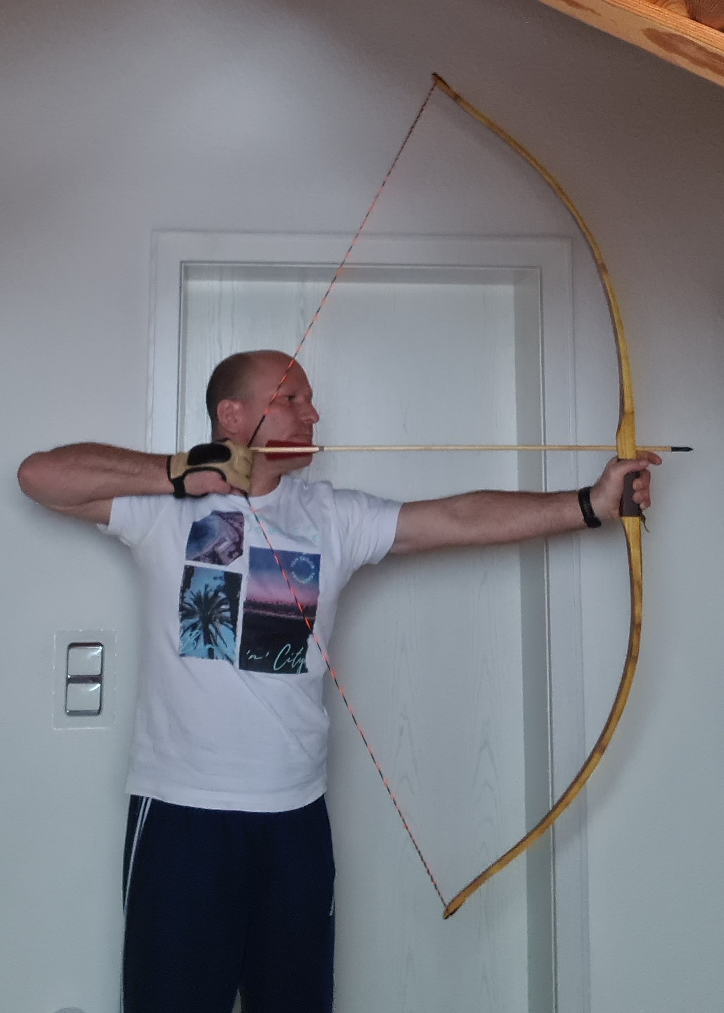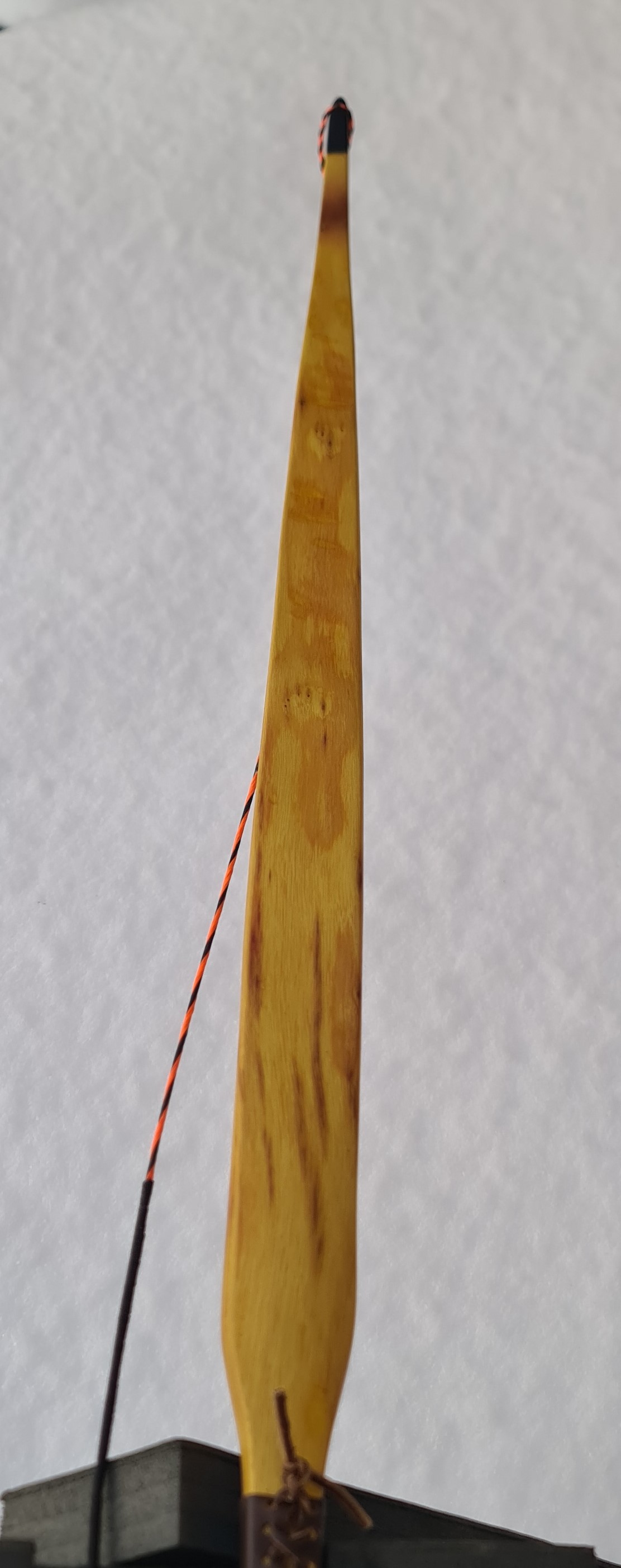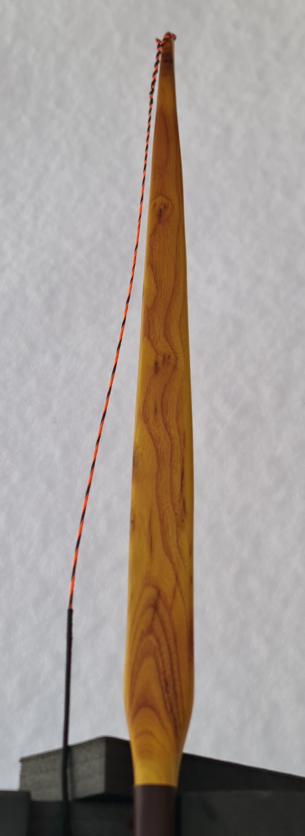 Das Wetter: Seitenansicht entspannt: Gesamtansicht Bauch: Bauch und Sehnenlage: Gesamtansicht Rücken: Bauch oberer Wurfarm: Rücken oberer Wurfarm: Bauch unterer Wurfarm: Rücken unterer Wurfarm: Griff bauchseitig und Fadeouts: Rückenansicht Griff mit Schnürung: Seitenansicht Griff mit Pfeilanlage: Draufsicht Tip und Overlay: Seitenansicht Tip und Overlay: Standhöhe: Auszug von links: Auszug von rechts: Und der Vollständigkeit halber noch ein Bild von der Tillerwand vor dem Finish (hier nur bis 26'' gezogen):