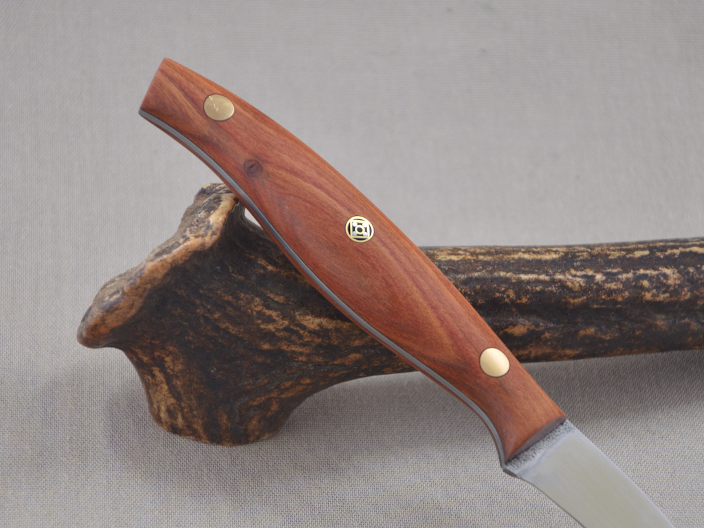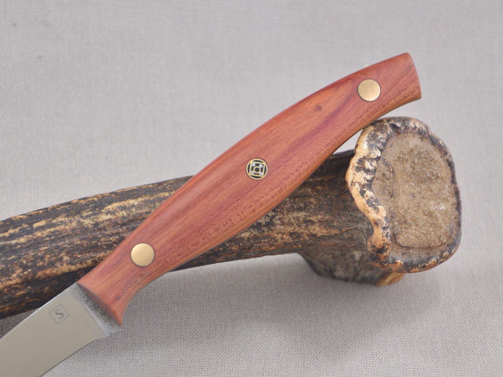 Mein Zahnarzt bekommt dieses Messer. Kurz vor Weihnachten waren seine Frau und er bei uns zu Essen und da wurde quasi dieses Messer bestellt. Ich habe dann gleich in meinen Holzvorrat gegriffen und sie haben sich das Holz, die Nieten und einen Mosaikpin ausgesucht.