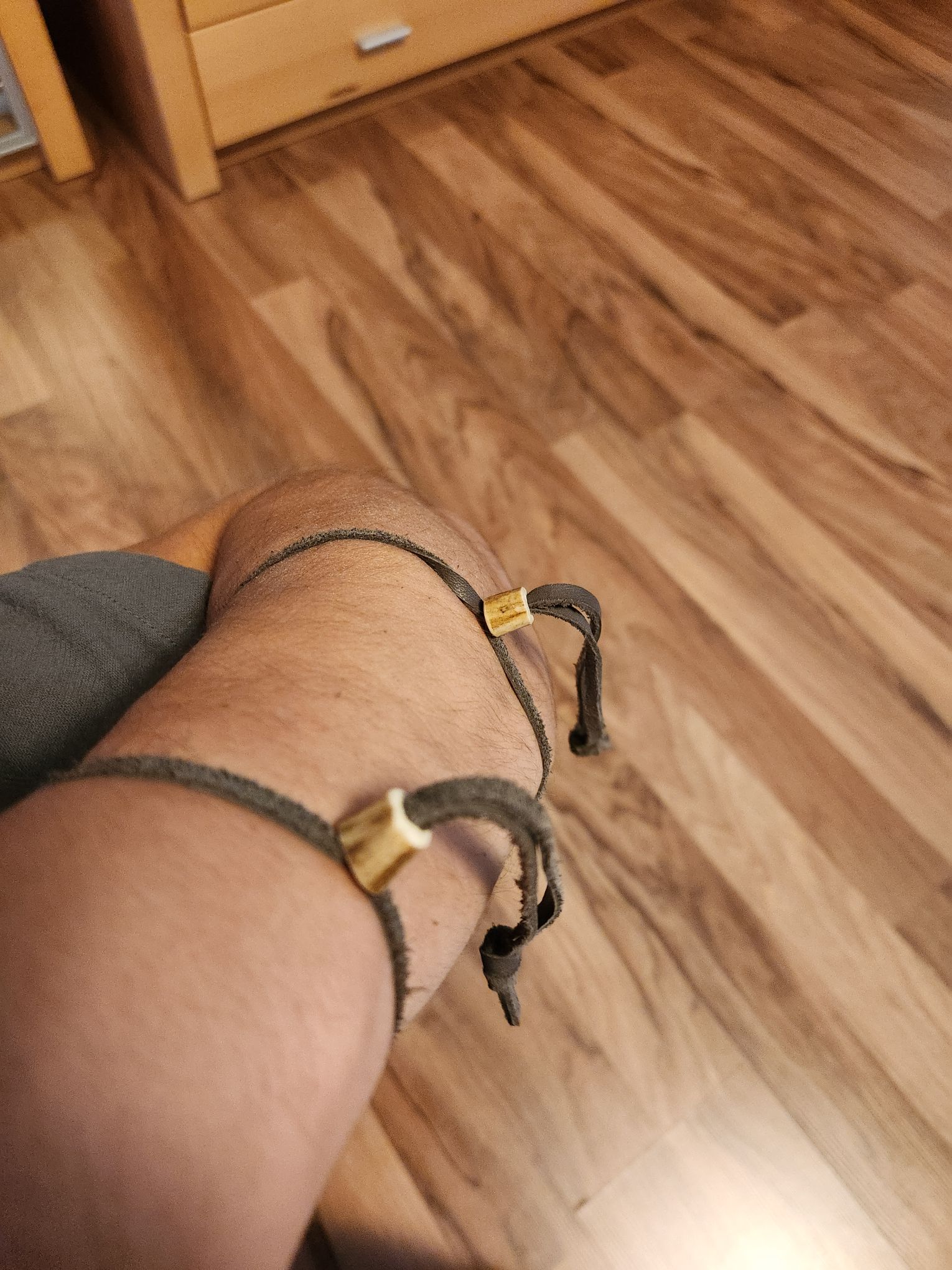 Nebenbei zeig ich hier auch kurz den Knochenarmschutz (aus dem selben Buch) den ich quick and dirty in etwa 45 min nachgebaut hab. Ich hatte bereits eine von den Abmaßen und der Form passende Knochenplatte zufällig daheim. Da dieser Armschutz sehr selbsterklärend ist belasse ich es bei den Fotos des fertigen Armschutzes.