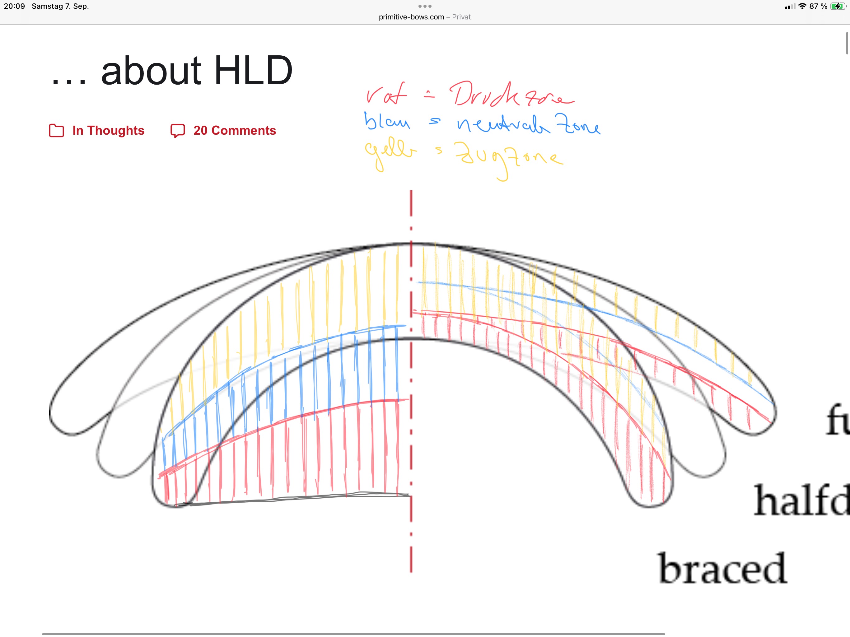 Ich persönliche denke, dass ein HLD nur bei sehr sehr sehr leichten Zuggewichten einen Effekt auf den Verlauf der Auszugskraft hat - abgesehen davon, dass mit dem "Abplattungseffekt" auch die Gefahr des Knicken steigt (weiß ich nicht, ob man das unbedingt so will... plus die Scherspannung in ungünstiger Faserrichtung). Bei schwereren Bögen könnte ggf. ein Vorteil die Gewichtseinsparung sein, aber ob das den Aufwand lohnt... Einen Hingucker finde ich es aber trotzdem