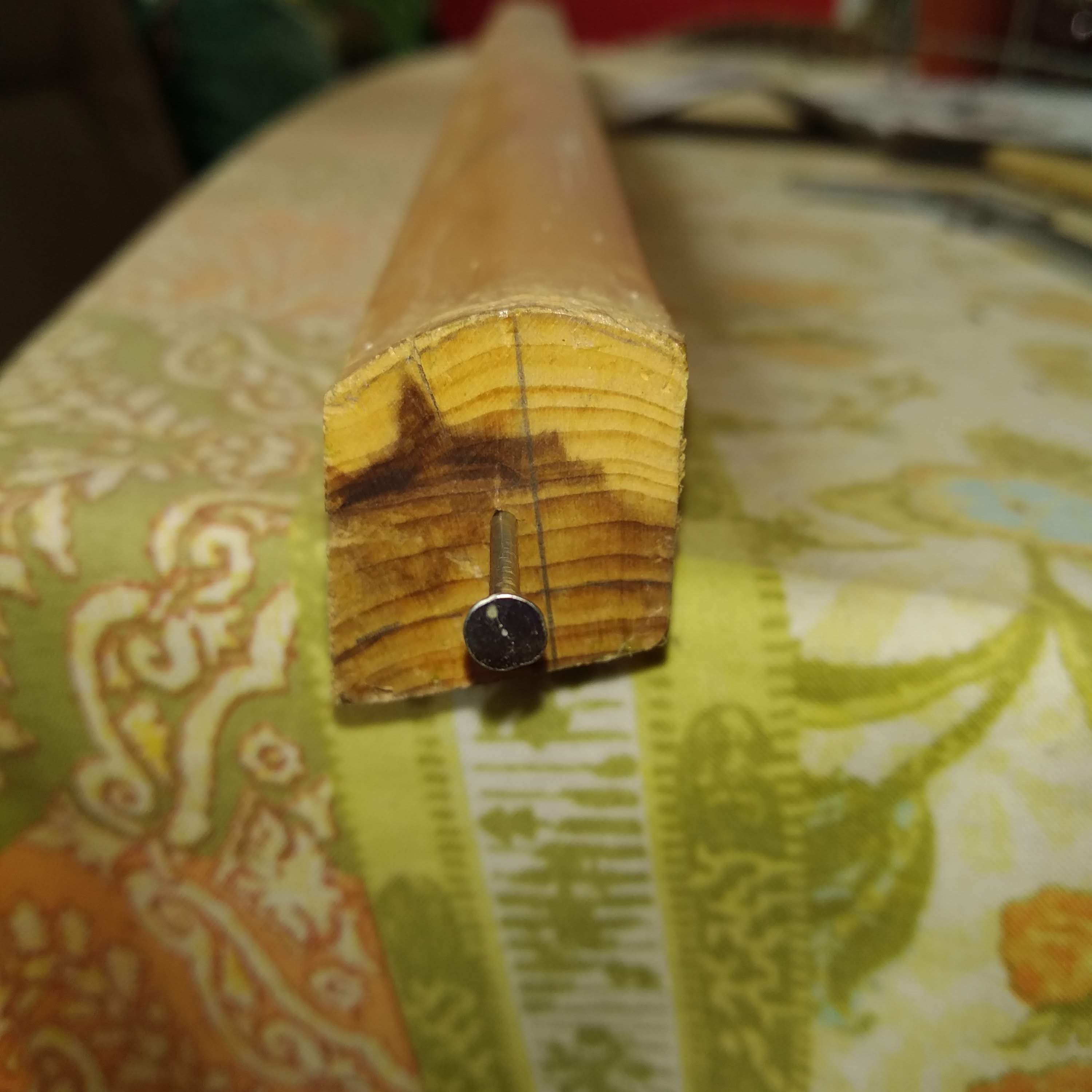 Weil mir die 32# doch zu wenig sind (waren sie mir damals eigentlich schon) und ich eine extreme Befriedigung darin fand den Bogen zu bauen und dann auch zu schießen, wollte ich immer einen zweiten bauen. Das habe ich dann auch vor etwa 10 Jahren voller Zuversicht begonnen - und dann hatte ich plötzlich einen ("Bogenbauer")Blackout. Ich wusste nicht mehr weiter. Traute mich tatsächlich nicht mehr weiter zu machen, war quasi überfordert wie ich weitermachen soll. Jedenfalls hab ich den bis dahin bearbeiteten Rohling wieder in der Scheune eingelagert und dort lag er nun dunkel, gerade liegend, luftig, bis Vorgestern.