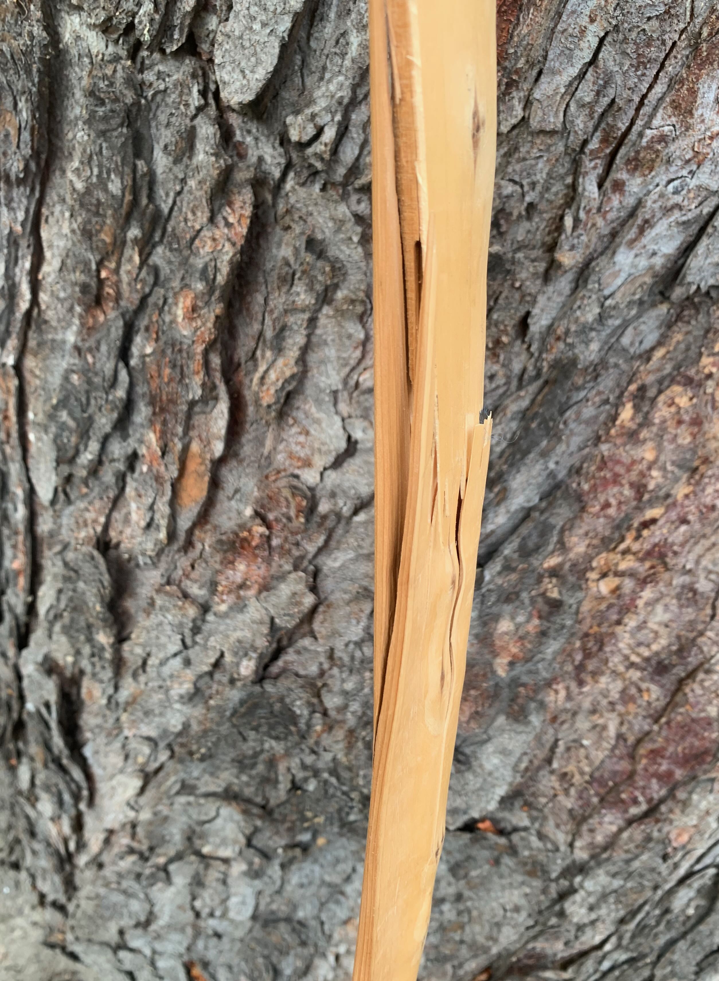 Beim Foto vom Vollauszug deines Ulmebogens sehe ich einen ziemlich unregelmäßigen Dickenverlauf (bzw. Dickentaper=Dickenabnahme zu den Tips hin). Schau dir das Foto nochmal in groß an, dann siehst du auch, was ich meine. Das provoziert auch Schwachstellen. Beim Tillern solltest du das im Auge behalten, entweder durch messen oder durch das entlangfahren mit den Fingern, Daumen am Rücken, Zeigefinger am Bauch. Du wirst staunen wie genau man den Dickenverlauf und jeden Berg/Tal-Bereich spüren kann (ggf. mit etwas Übung).