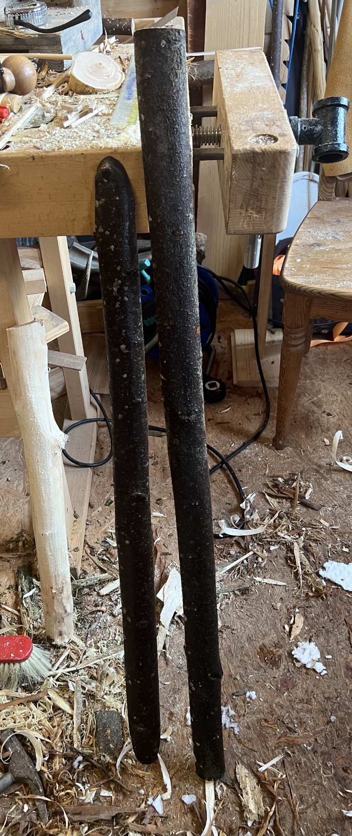 Im Grunde habe ich aus dem Wacholder nur einen 110cm langen halben Stave und ein paar Restabschnitte erhalten können. Vielleicht fällt mir dazu noch was ein, die Wacholderteile werden vorerst zum Trocknen in die Ecke gestellt