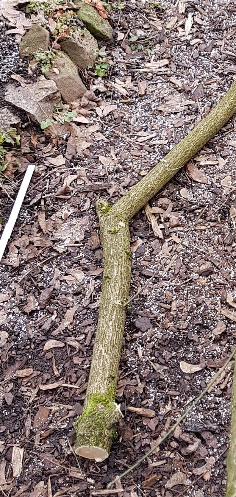 Jetzt habe ich noch ein Stück mit 80 cm und ein Stück mit Knick, das als Griffteil dienen könnte. Auch hier mal sehen.