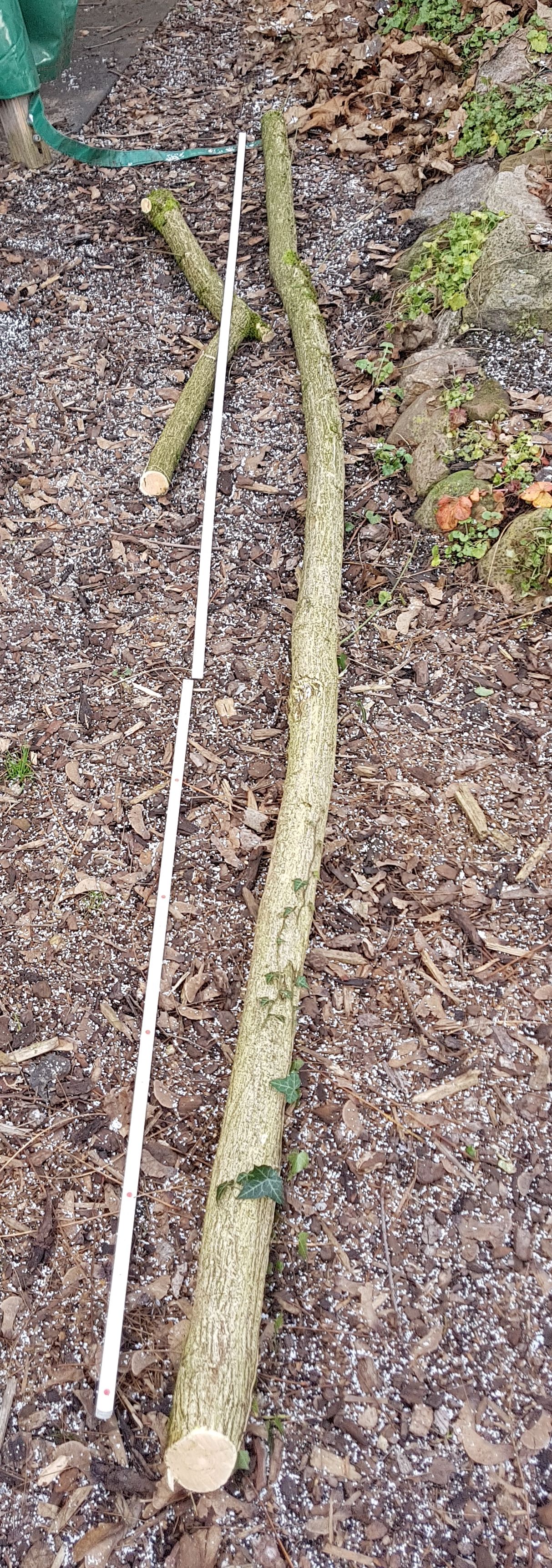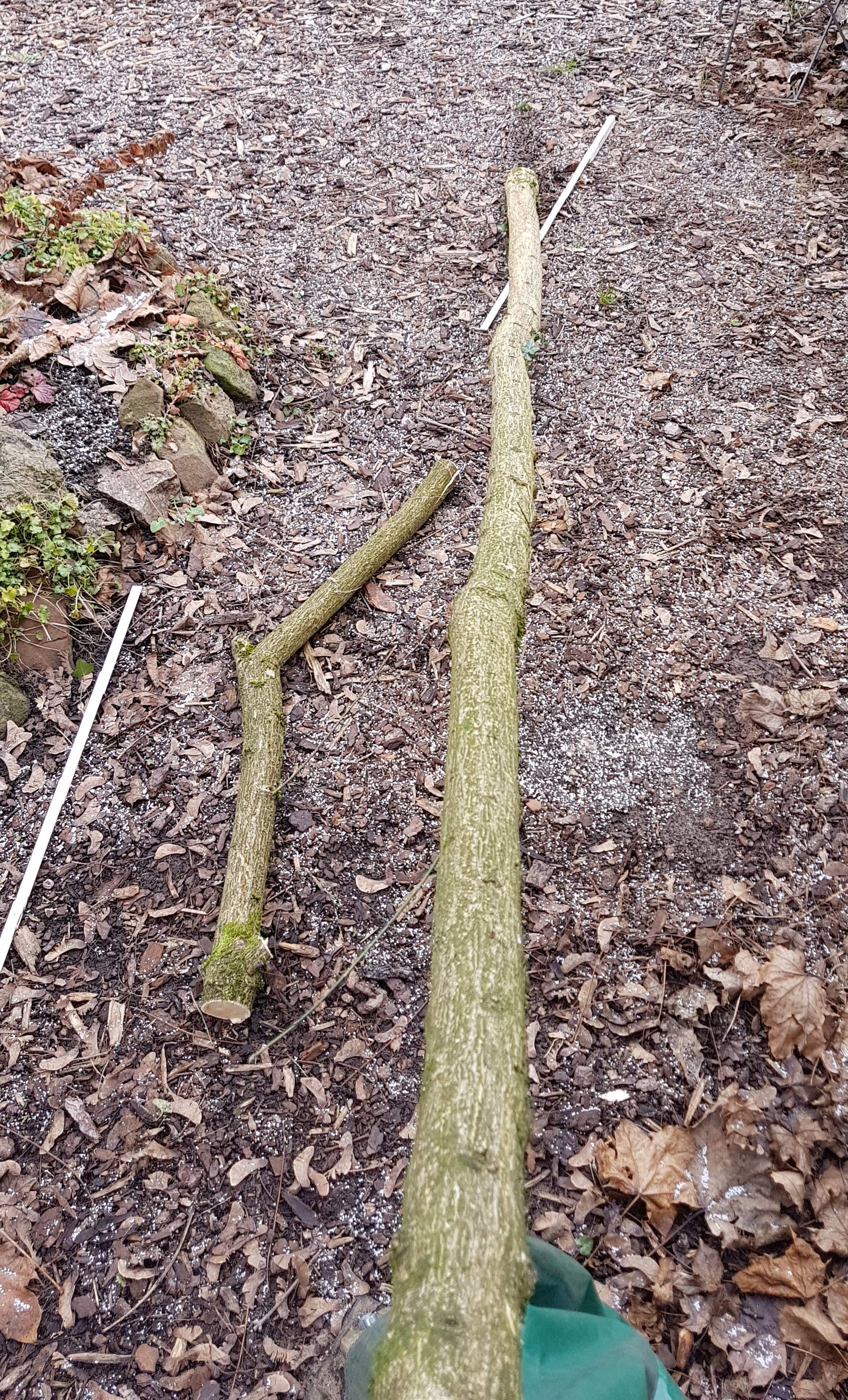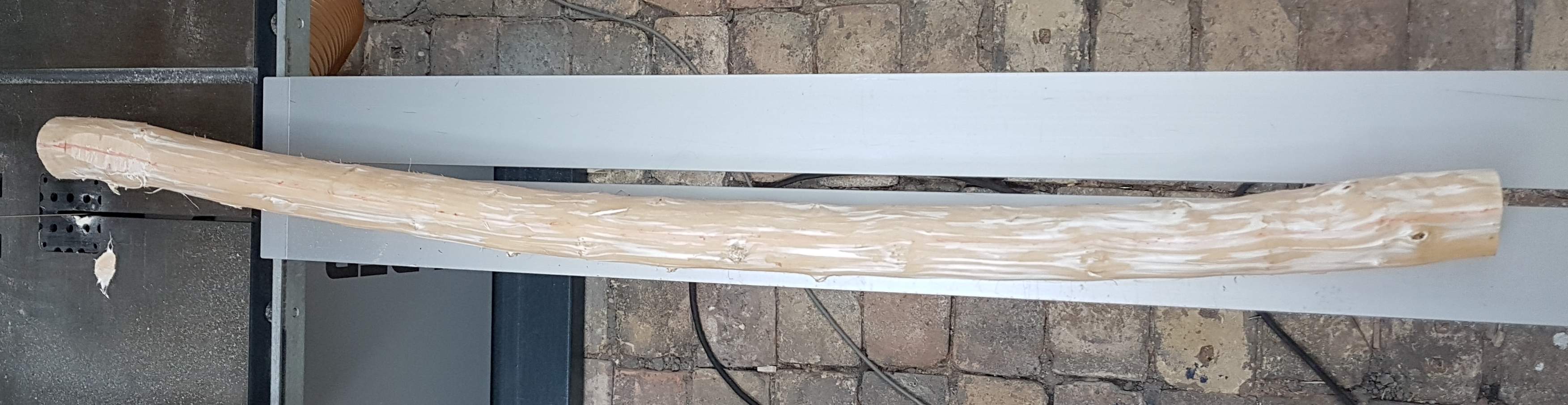 Jetzt habe ich noch ein Stück mit 80 cm und ein Stück mit Knick, das als Griffteil dienen könnte. Auch hier mal sehen.