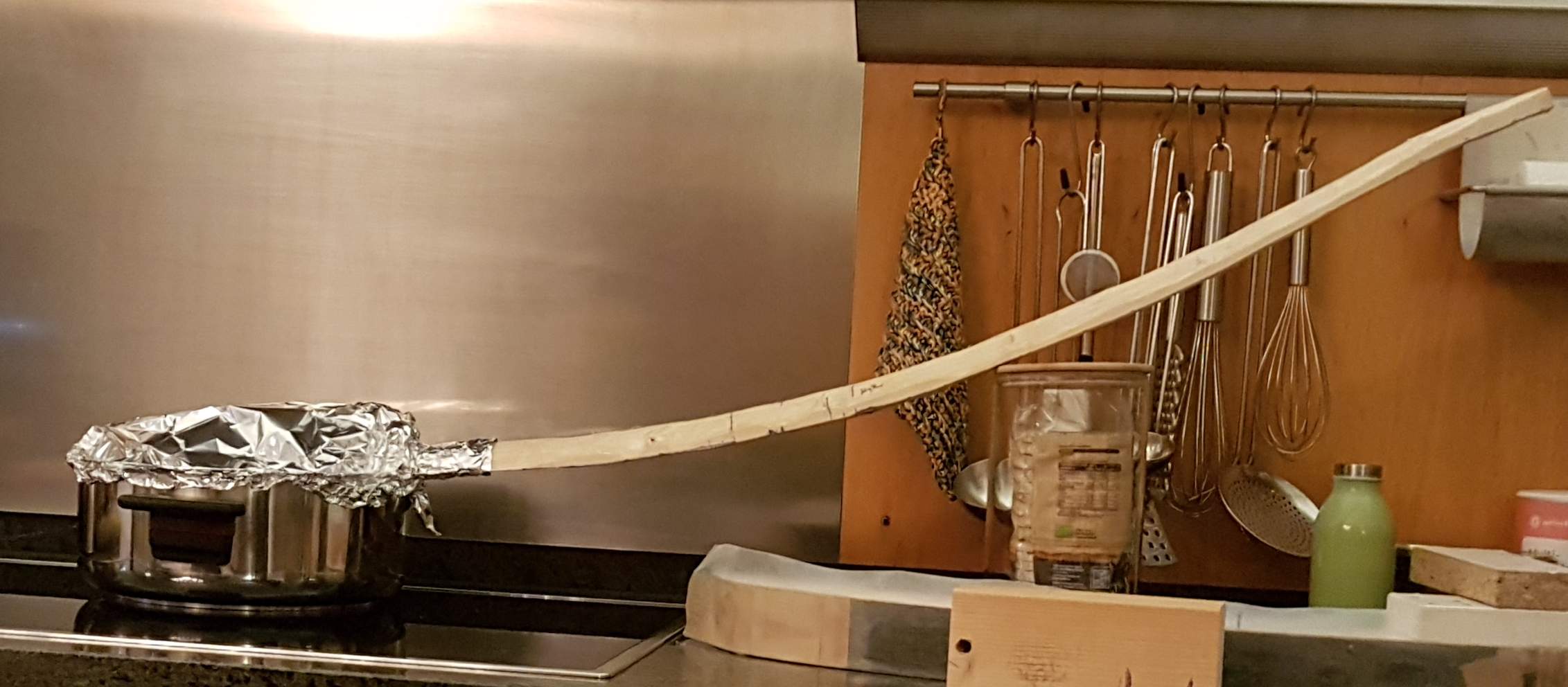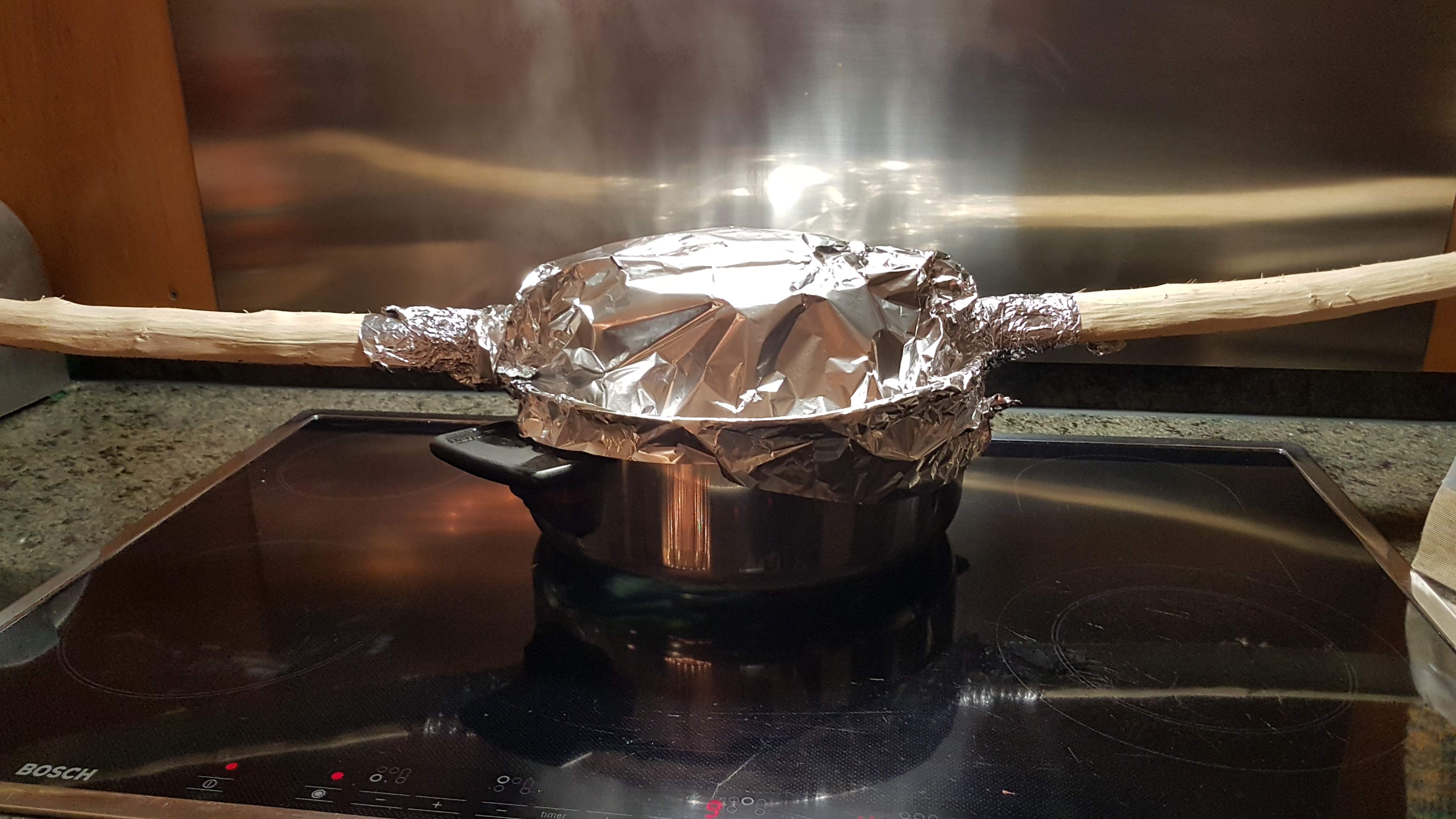 Heute ist das Stückchen Holz in einen kalten Nebenraum im Haus umgezogen. Das Ding iss voll mit Wasser, Gewicht ca. 1,5 kg.