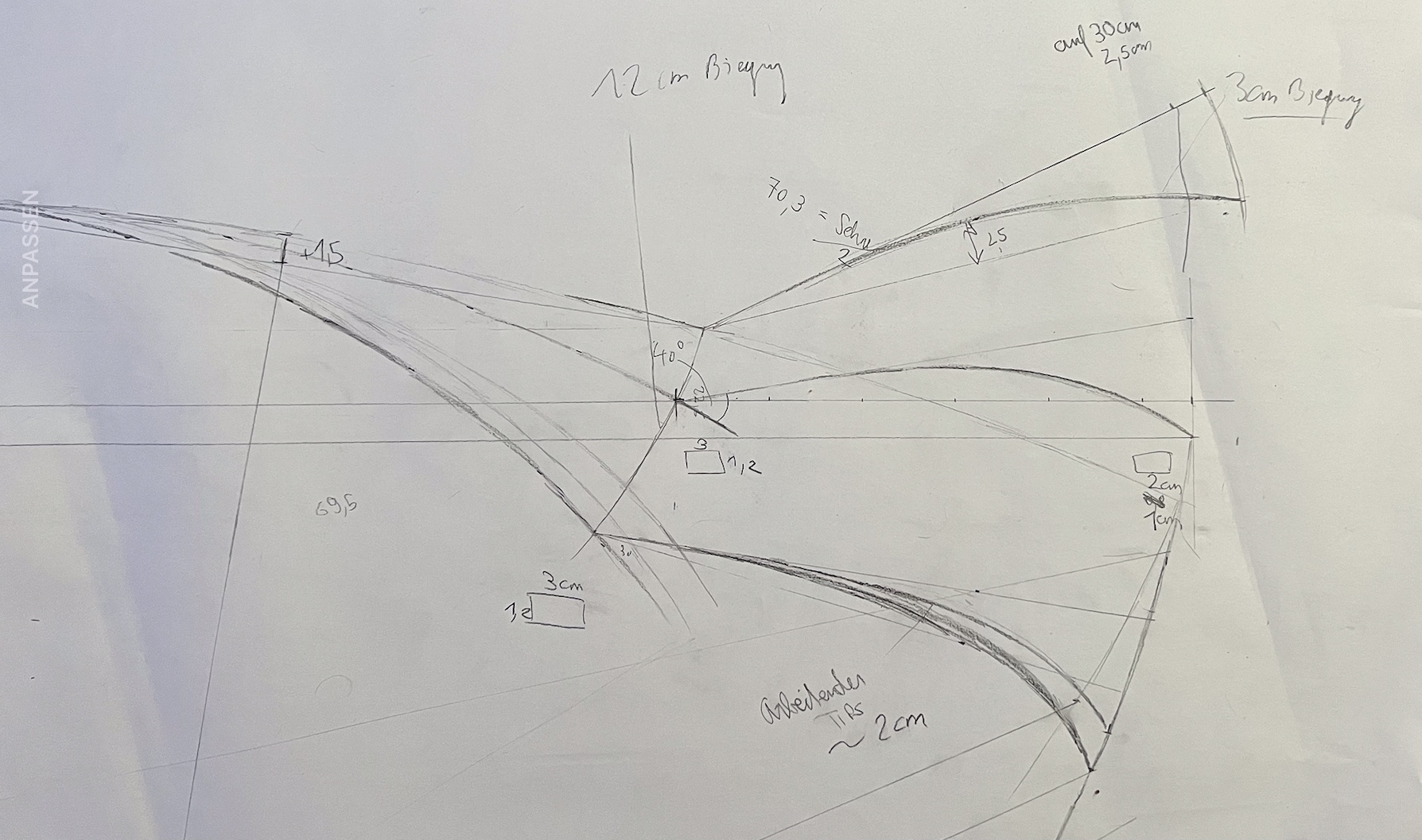 Ich habe mir natürlich einen Plan gezeichnet und dann die entsprechenden Biegeschablonen dazu gebaut. Das deflexe Mittelteil braucht dabei bei 85cm Länge für einen Auszug von 23 Zoll auf jeder Seite nur 12cm biegen wenn die beiden 30cm langen Endstücke jeweils 2 cm biegen. Mein Wacholder hält das aus (hoffe ich), die Fichte knittert wahrscheinlich bei dem engen Biegeradius weg. Das die Inuit für das Mittelteil gerade Fichtenleisten genommen haben, glaube ich nicht. Bei den abgebildeten abgespannten Bögen hätte sonst jeder Bogen 10cm Set. Wegen des Kabelbackings: habe natürlich begonnen eine aus Sehnen 3fach geflochtene und gespleißte Schnur zu bauen, nach 50cm habe ich festgestellt, dass es ein Leben vor dem Tod gibt und bin jetzt auf der suche nach einer fertigen geflochtenen Schnur