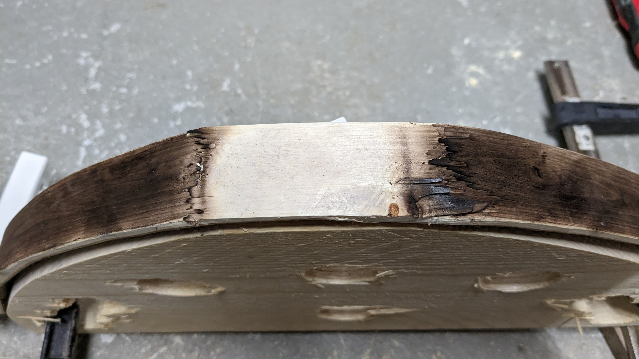 Den Hauptbogen mit aktuell noch 180cm Länge habe ich zu den Enden hin noch etwas mehr geflippt und die äußeren Wurfarme auch nochmal geröstet.