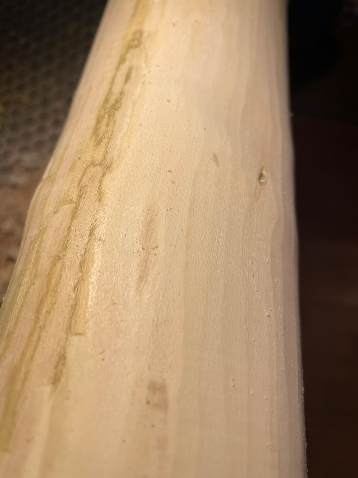 Das Holz hat eine grünlich-weiße Farbe. Das grünliche kann auch verschwinden....