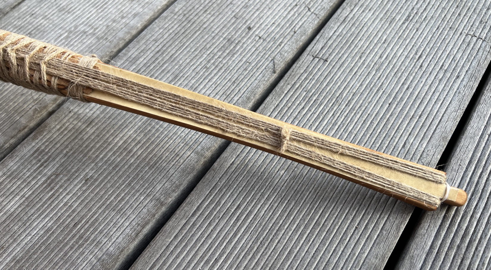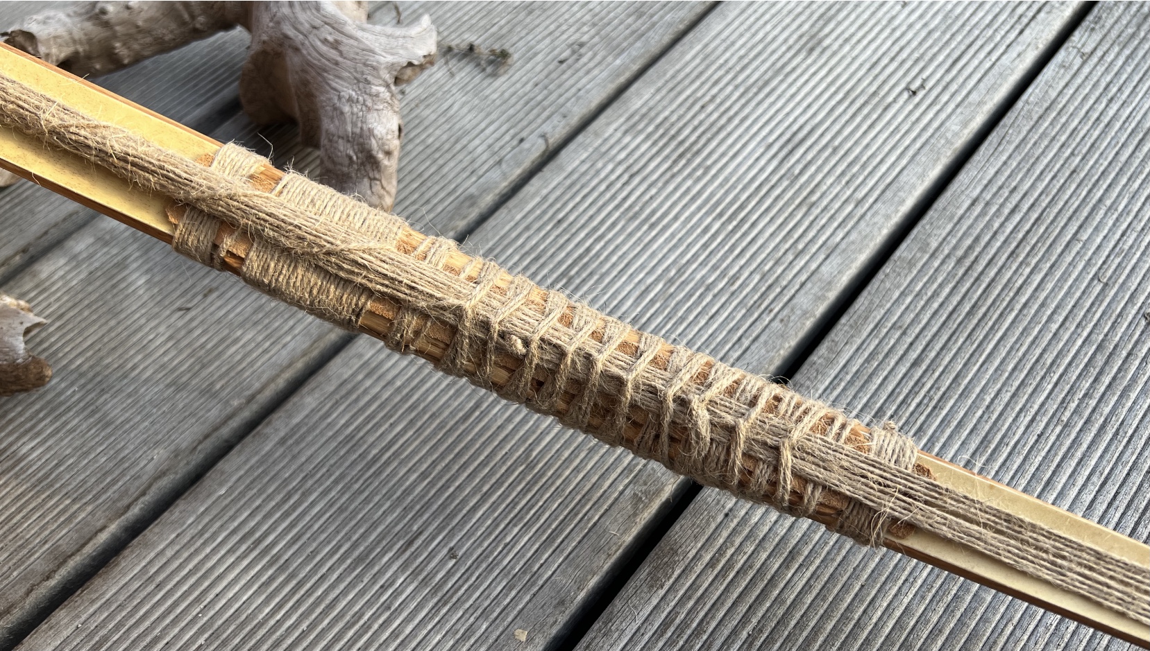 Holunder mittig gepleißt und mit Hanfwickelung verstärkt..