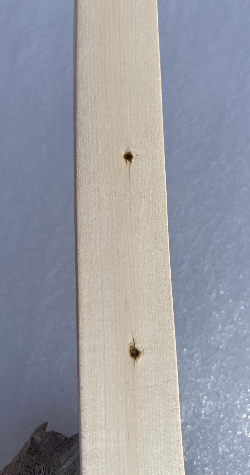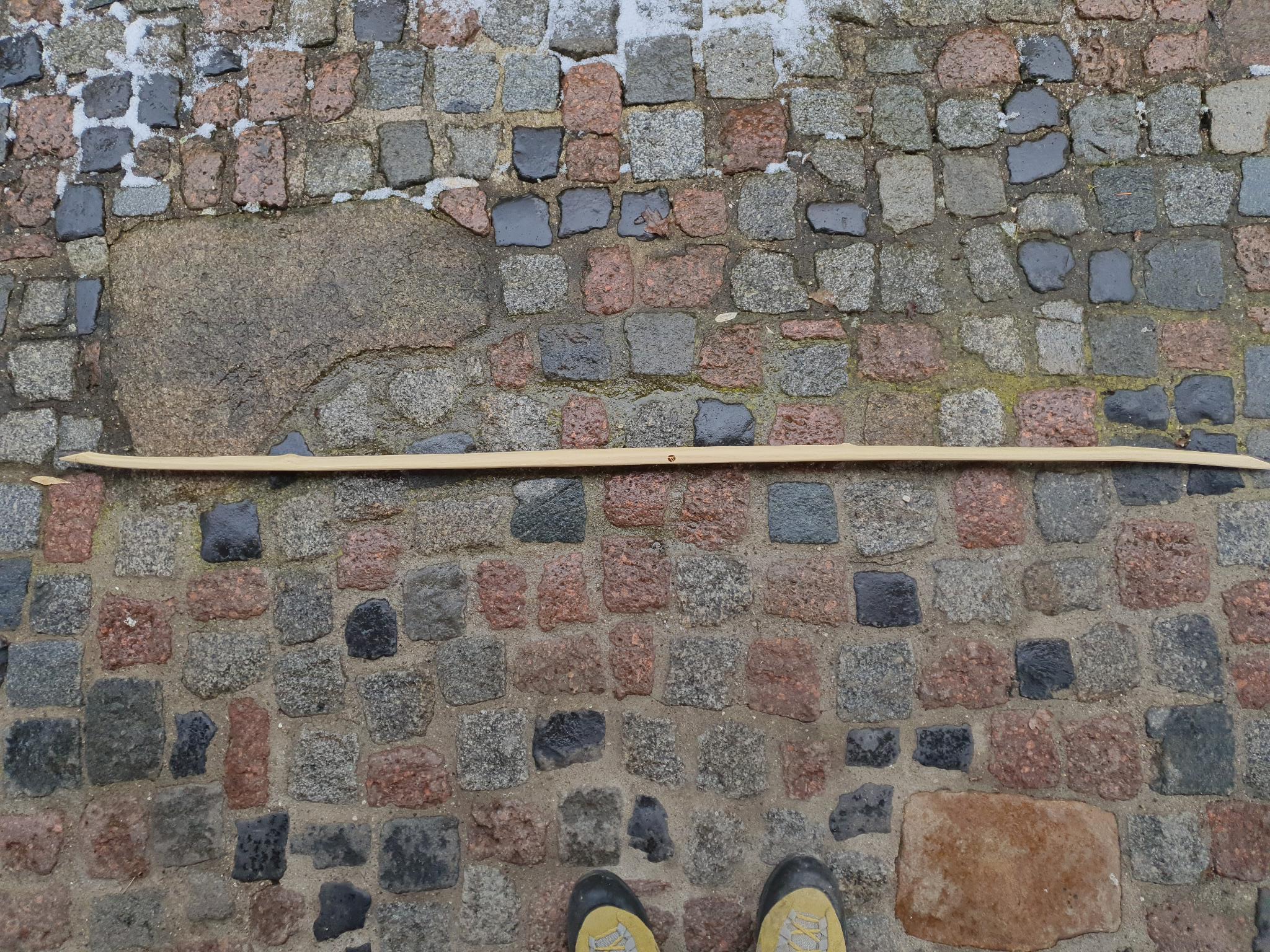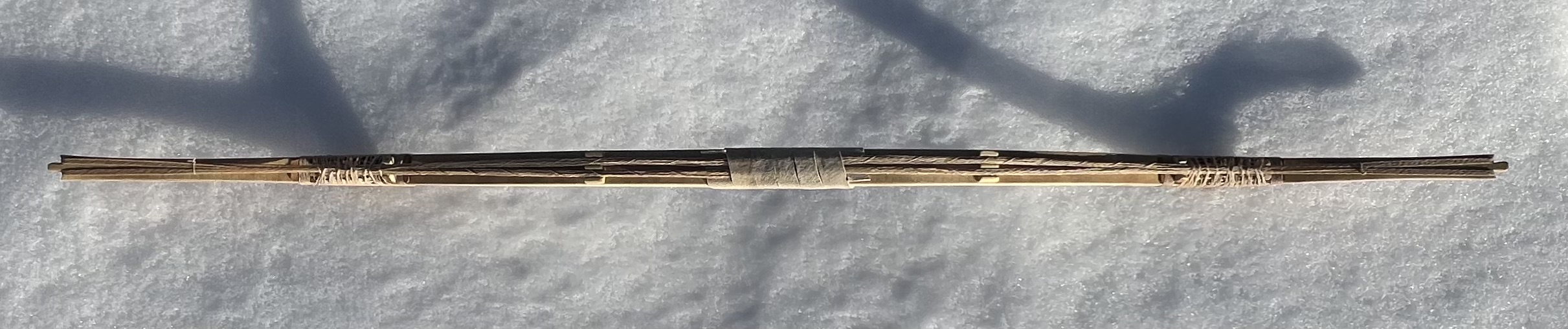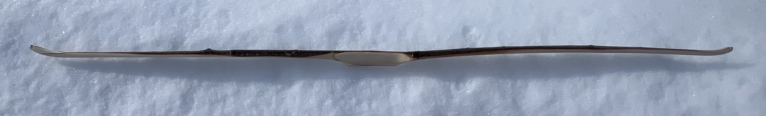Mittelbogen: Schnelltrocknung in der Sauna, 98cm lang, 7cm deflex, in der Mitte 3,6cm breit und 1,9cm dick, an den Enden 3,5cm auf 1,3cm