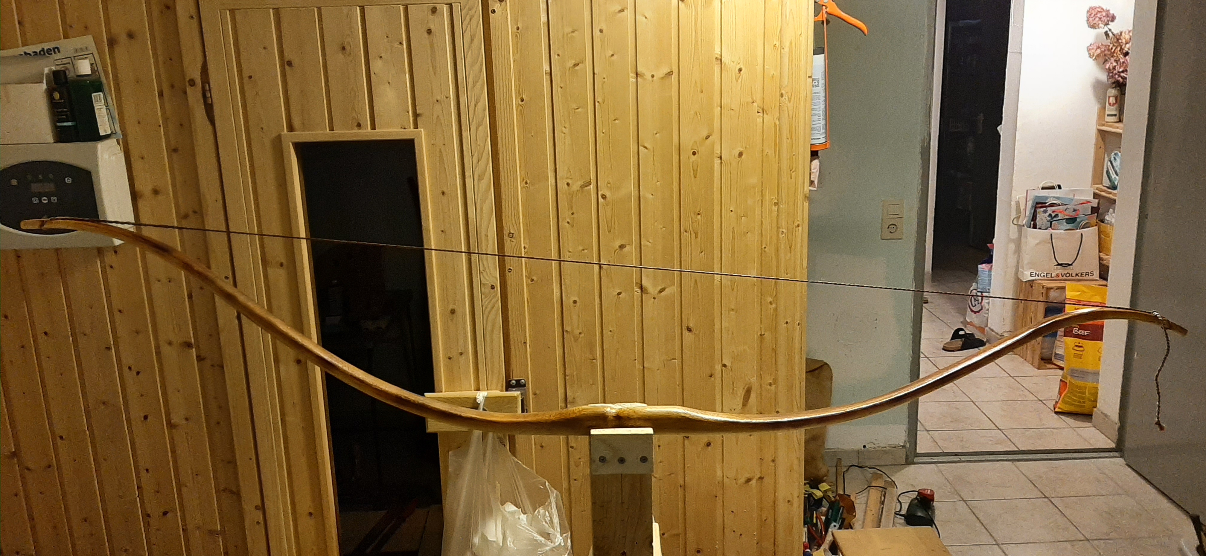 Noch eine Frage, die sich mir gerade stellt: ich möchte auch die passende Sehne selber bauen, nehme ich da die Bogenlänge des geraden Bogens (bevor was gebogen wird) oder erst danach?