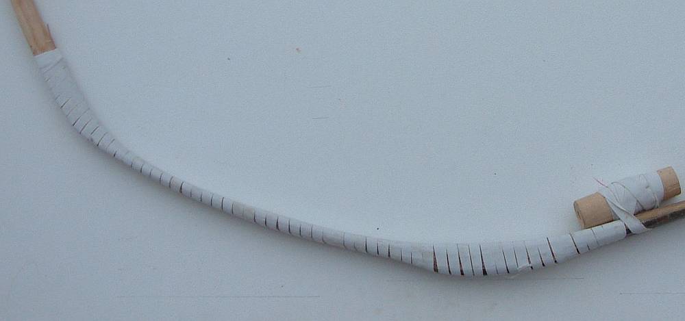 wie man sie auf einen Bogenrücken aufbringt? - kein Problem. Rohhaut (2Streifen, einer für jeden Wurfarm, jeweils ca. 2cm breiter als der WA ist) feucht machen, abtrocknen. Den Bogenrücken ud die Rohhaut mit Leim (bevorzugt Hautleim, Weißleim soll auch gehen, aber keine eigene Erfahrung damit) dünn aber gleichmäßig einstreichen. Die Rohhaut, von der Mitte her beginnend auflegen und blasenfrei ausstreichen. Dann mit Mullbinde o.ä. dicht umwickeln und trocknen lassen. Mull abwickeln, an den Kanten in Richtung zum Bogenbauch arbeitend, mit einem Schmirgelklotz den überflüssigen Teil abschneiden. Anschließend evtl. Blasen aufstechen und mit Leim füllen (wickeln!) udn nicht sauber klebende Kanten nachkleben.