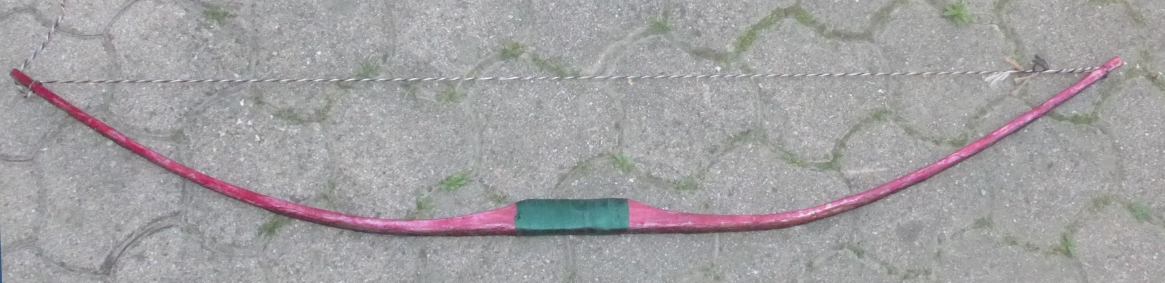 Also, der Ligusterbogen ist 145cm lang, effektive Länge 139cm. Zuggewicht 35#@27´´. Mit 20.6 Gramm Pfeil bei 27´´ Auszug, 135 fps.