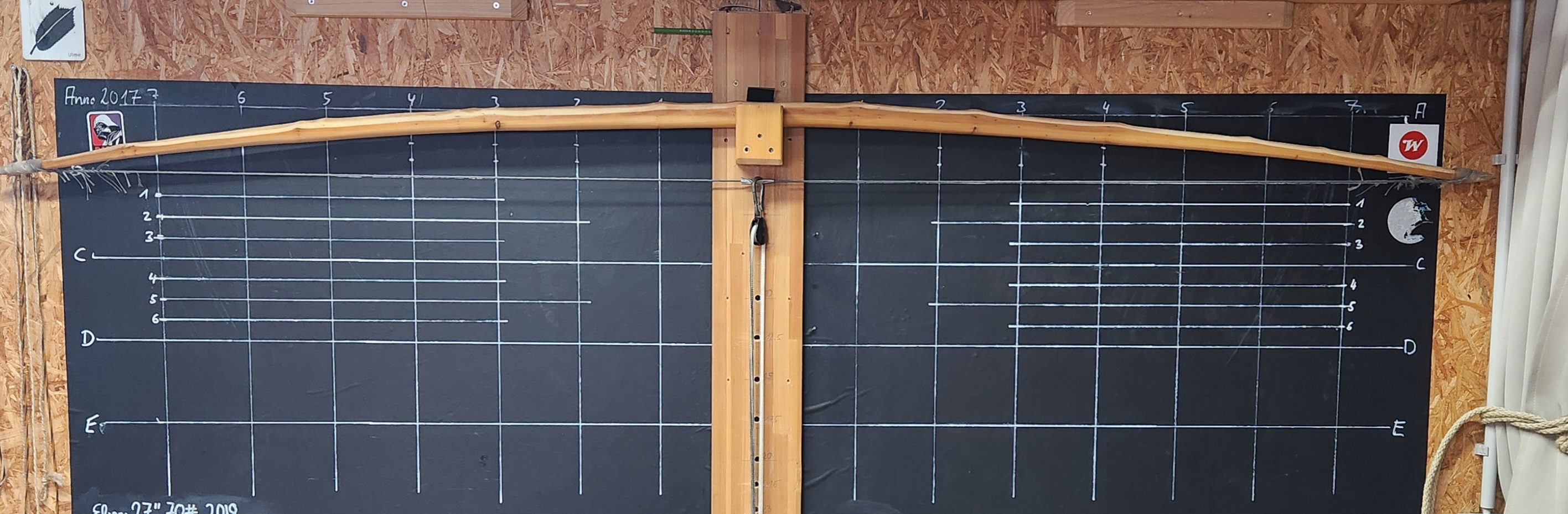 @Schnabelkanne: Ich kann diesen langen Bogen nur mit Spannschnur am Tillerbaum spannen.... Quasi mit Umlenkrolle die Spannschnur ziehen damit ich die Sehen in die Nocke bringe... ist ein gutes Fitnessprogramm :)