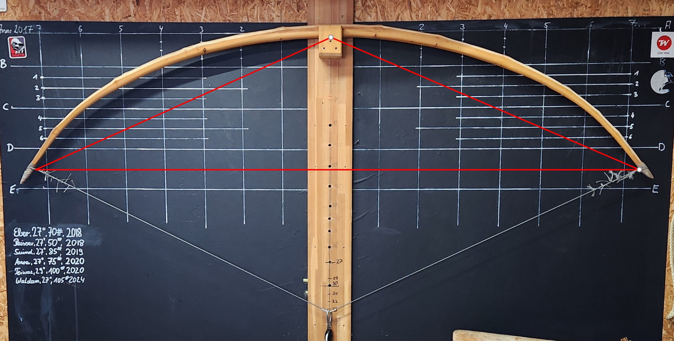 Bei 33" sollte er so zwischen 110 und 120# sein... d.h. ich muss jetzt gleichmäßig schwächen und will dabei aber nicht über die Zielpfundzahl ziehen...