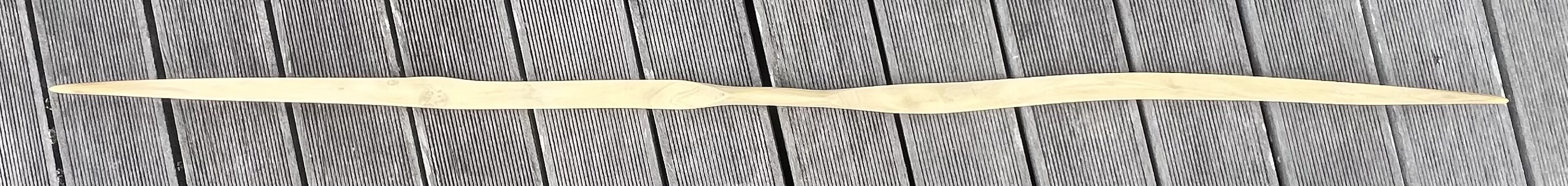Das Reststück war auch nur zum Probieren gedacht. Aber irgendwie will ich den Bogen jetzt fertig bauen. Die Wurfarme sind nur 3,7cm breit. Der Bogen aber 186cm lang. Vielleicht funzt es doch.