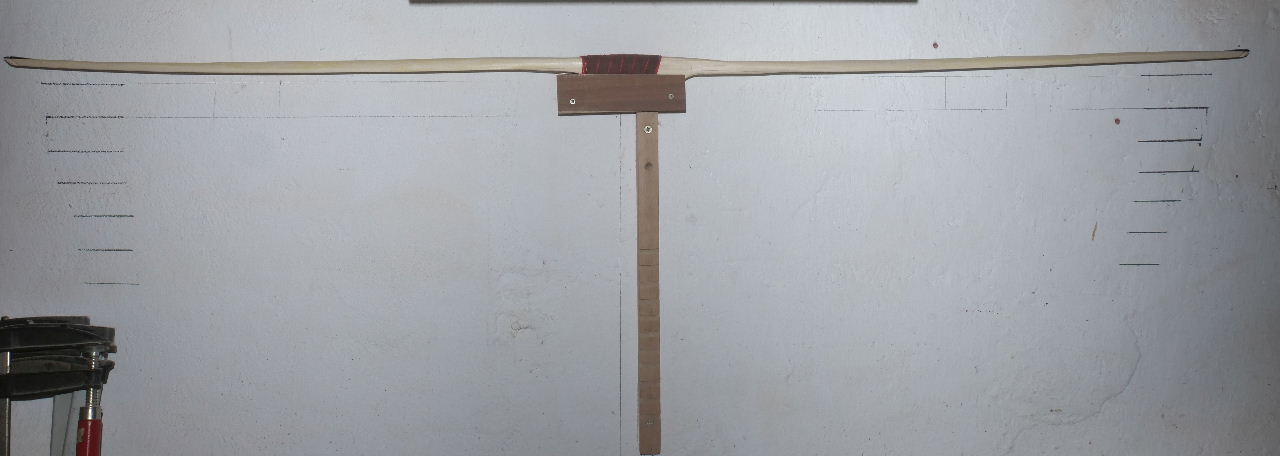 Der Bogen hatte anfangs ein Setback von 5 cm. Jetzt zeigt er immer noch 1 cm Setback (Abb.1). Das Holz hat also gute Rückstellkräfte.