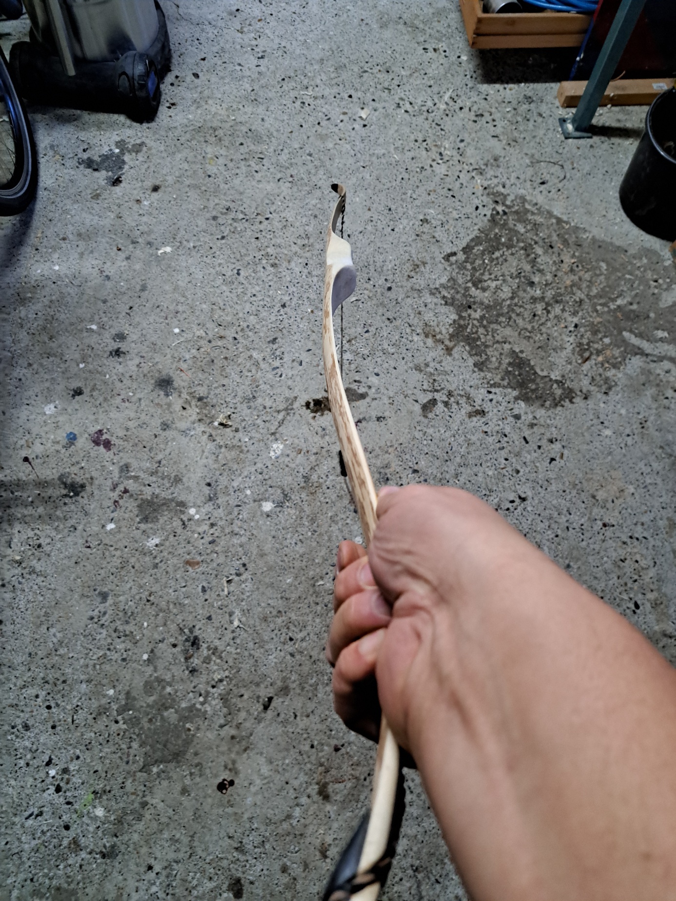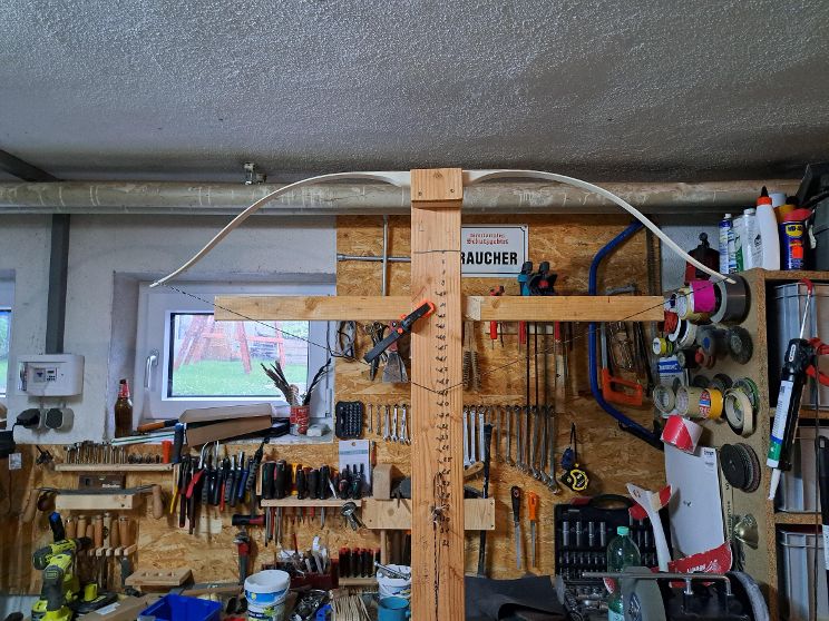 Danke für den Hinweis. Hier noch das Bild vom angespannten Bogen. hat schon ein bisschen set. werde ihn aber noch wärmebehandeln.