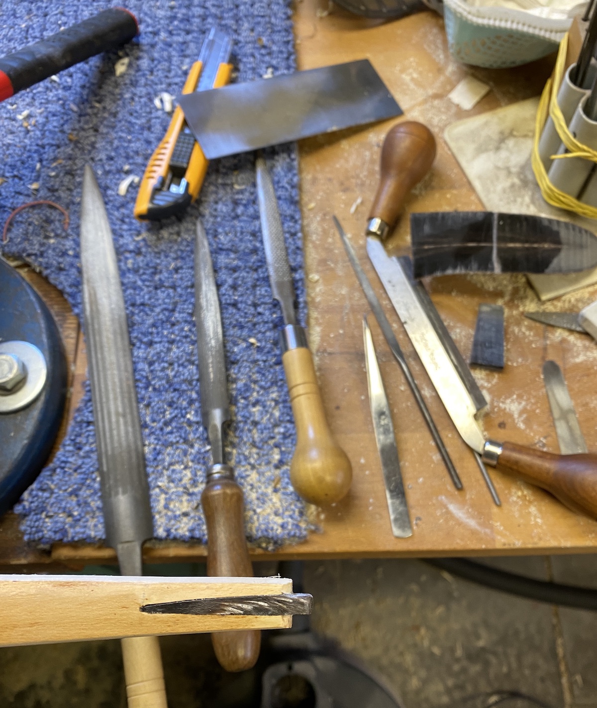 Werkzeuge: Säge, diverse Raspeln, Ziehklinge, Ziehmesser und Schlüsselfeilen.