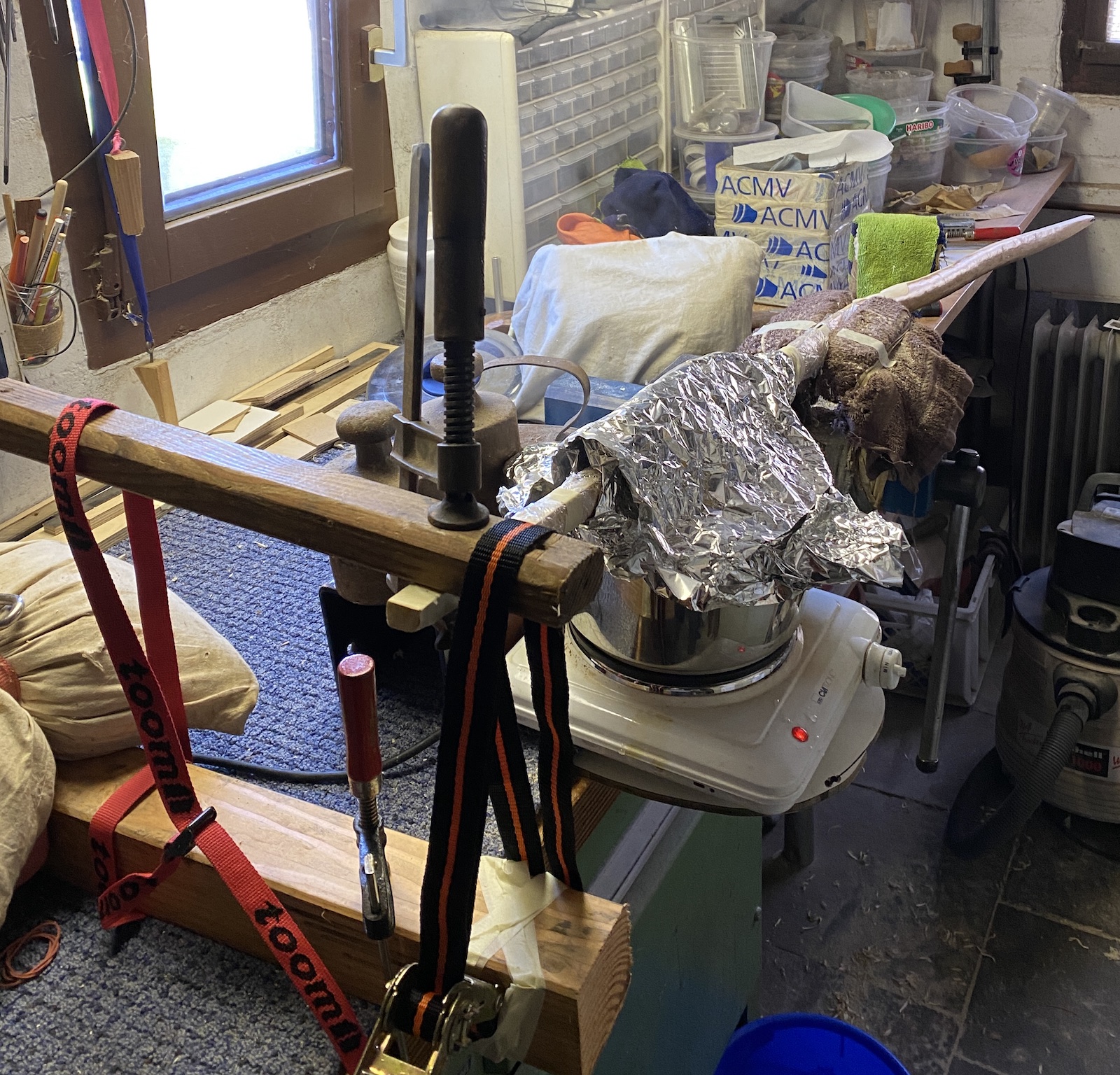 Im Moment härtet der Kleber der die beiden Bögen verbinden soll.