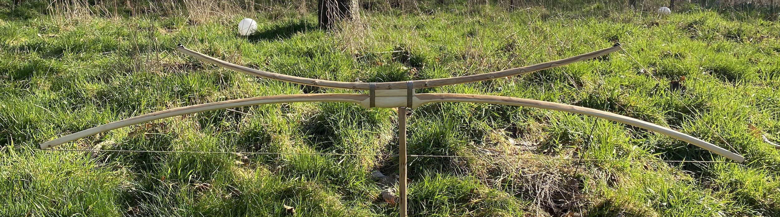 Nach einfeilen der Kerben kann man die Sehnen übereinander aufziehen (hoffe ich).