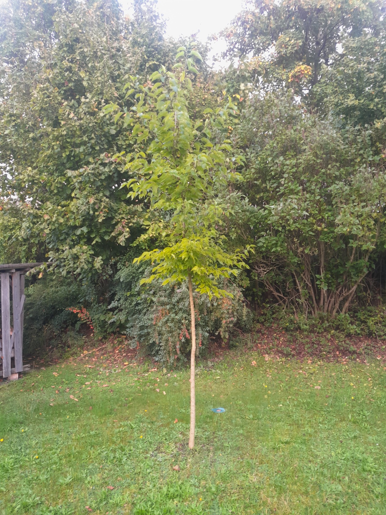 Das andere Bild zeigt einen Schaden am Baum, den ich leider mit dem Fadenmäher verursacht habe. Da war etwas mehr als die Hälfte vom Stamm beschädigt.. Der Baum hat aber auf der Rückseite so richtig dick Holz aufgebaut und hat dann die Stelle fast komplett überwallt. Wenn diese Bäume einmal verwurzelt sind sind sie ziemlich resilient.