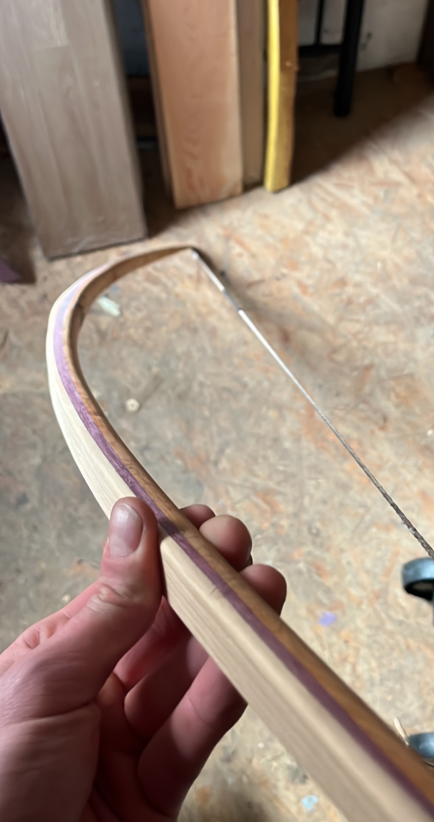 Allerdings hat es eine unglaubliche Rückstellkraft, was auch der Grund ist, warum es sowohl im Zug als auch im Druckbereich liegt. Gesichert am Rücken durch Hickory und entlastet am Bauch durch eine harte Eibe, die aufgrund ihrer 'drucktoleranz' das Holz der Wahl ist.