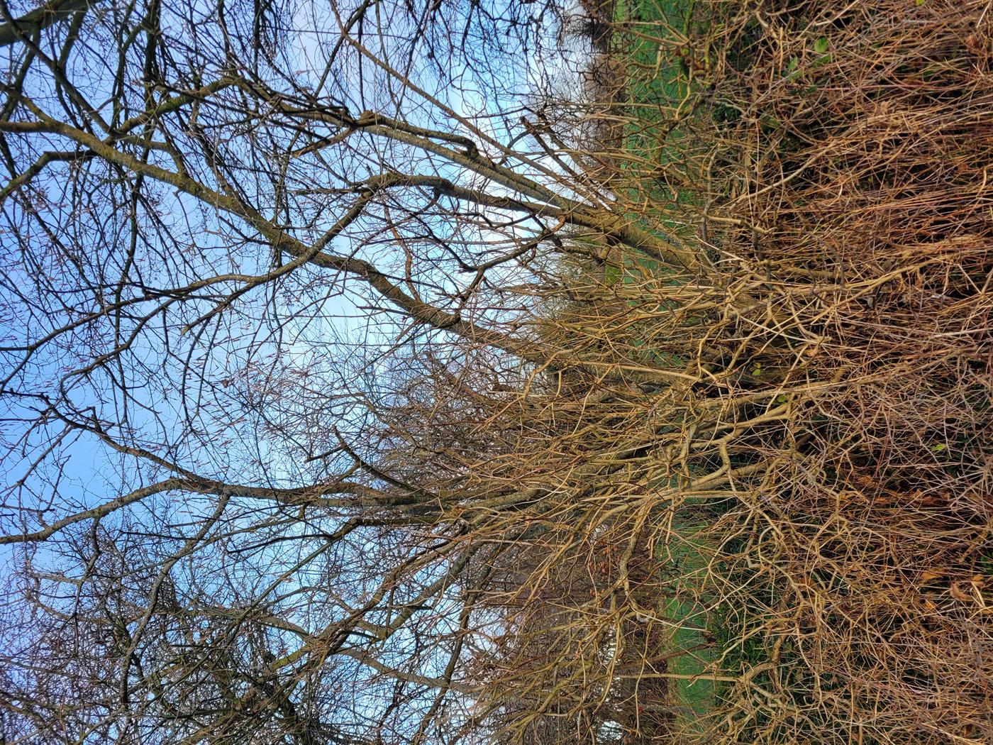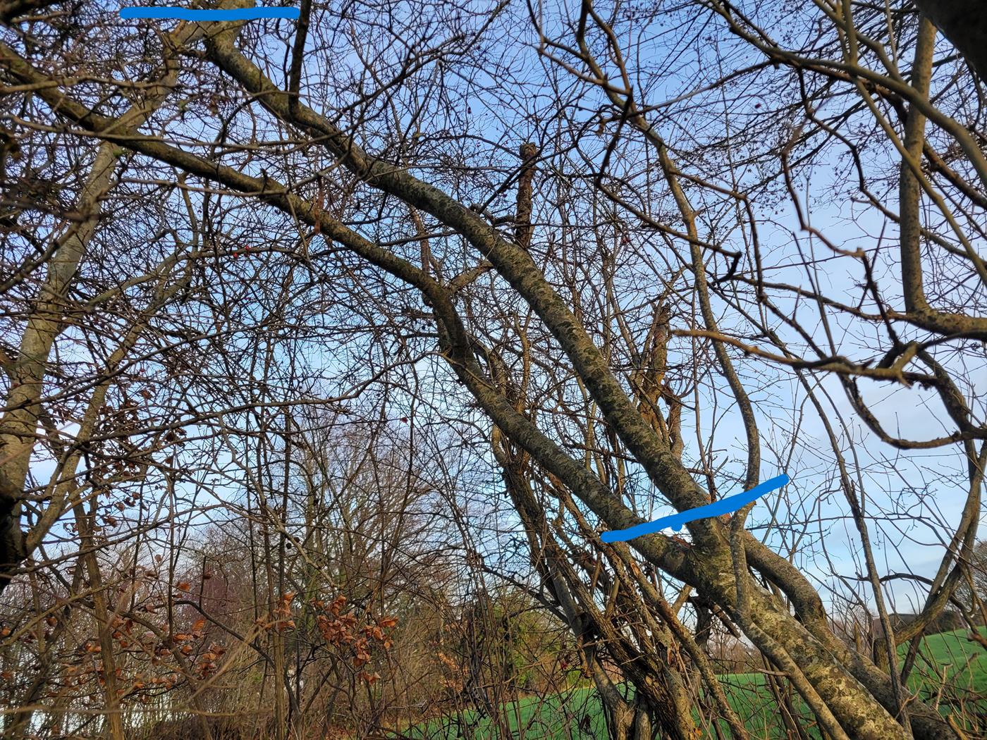 Die Ernte war etwas schwierig zu dokumentieren, da das gute Stück recht eingewachsen in einem Knick dastand. Geerntet habe ich es gestern am 2. Januar. Heute habe ich das Stämmchen dann grob heruntergearbeitet.
