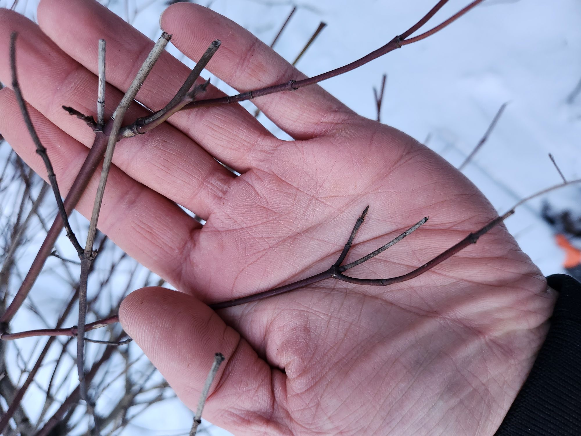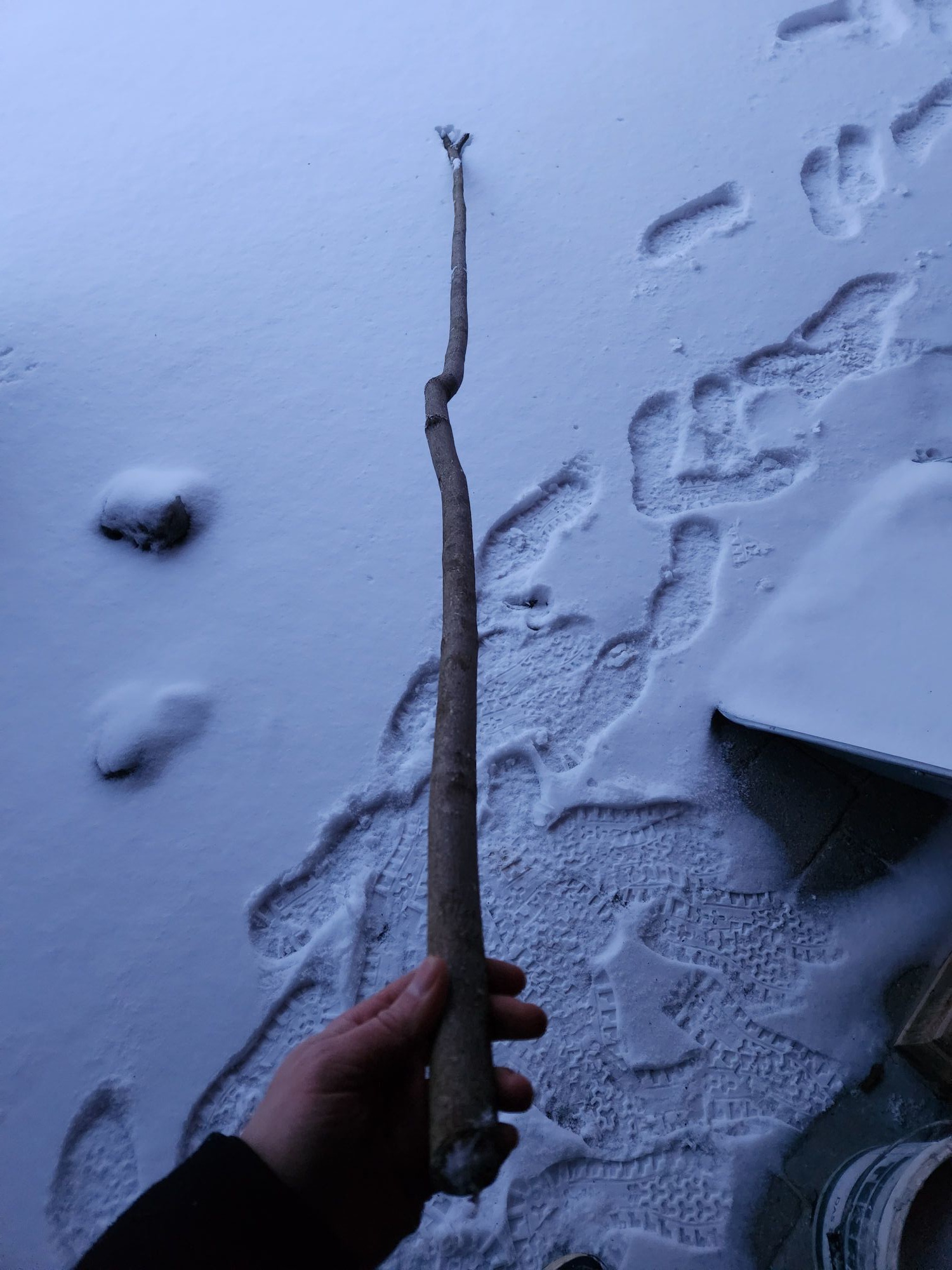 Mein Plan für heuer ist es, einen Stabbogen aus einem dünnen Hartriegelstämmchen aus meinem Garten zu bauen. Dafür hab ich schon vor ein paar Tagen dieses Stämmchen erblickt und jetzt geerntet.