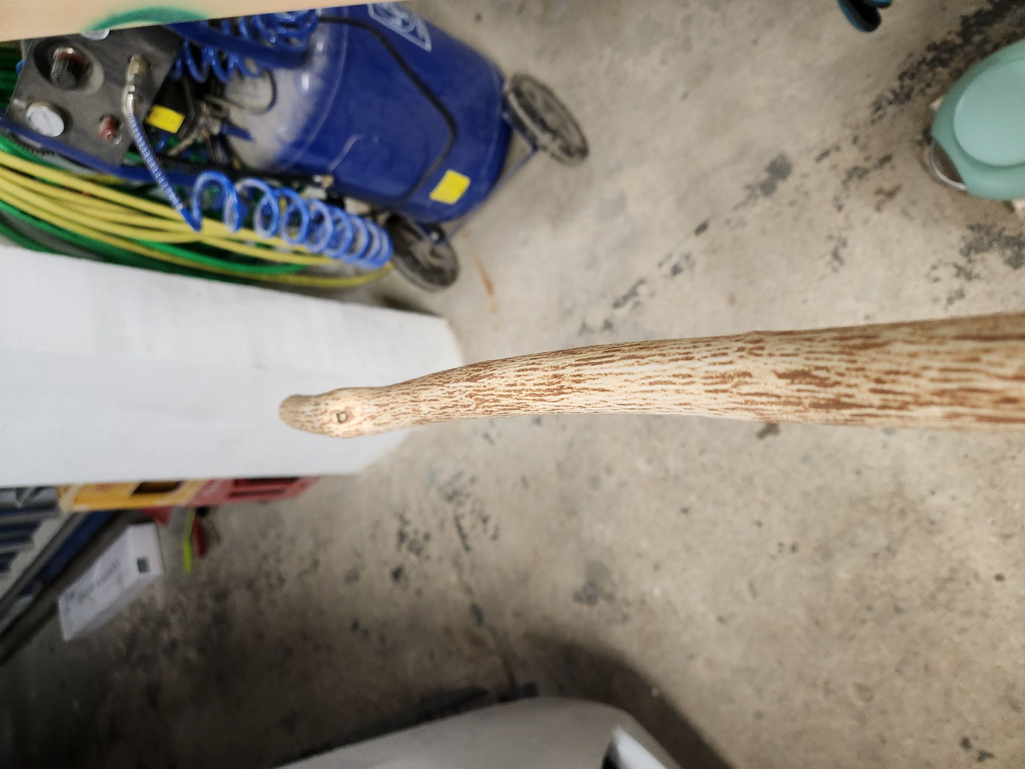 Ich hab mir den dickeren Stave jetzt nochmal angesehen. Der hat draußen in 4 Tagen nur 24g verloren, deshalb wandert der jetzt erstmal mit Rinde in die Garage. Bei dem seh ich im Moment nur 2 Möglichkeiten wie da ein Bogen drauß wird.