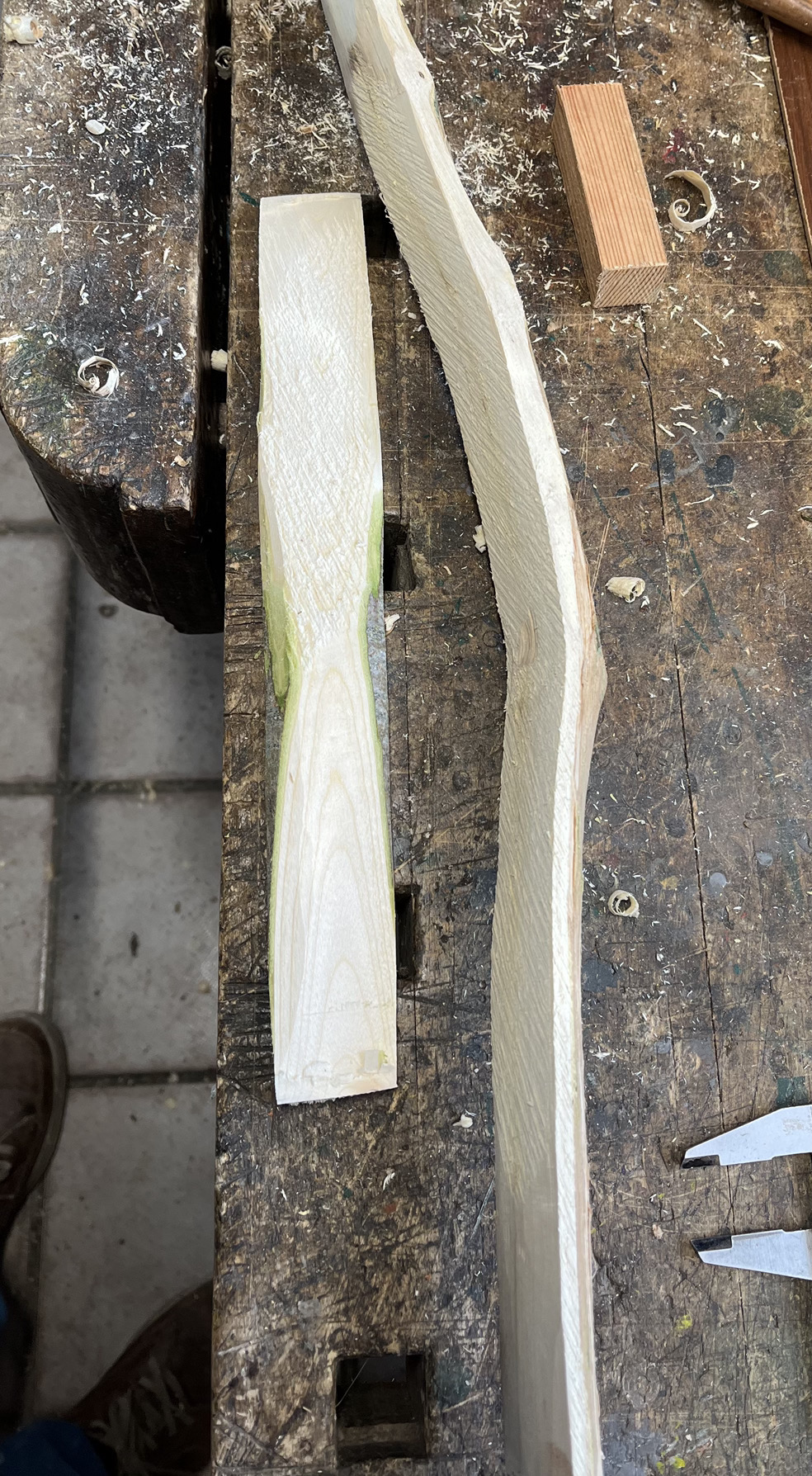 Heute habe ich den Douglasienast etwas dünner gemacht, damit er schneller trocknet.