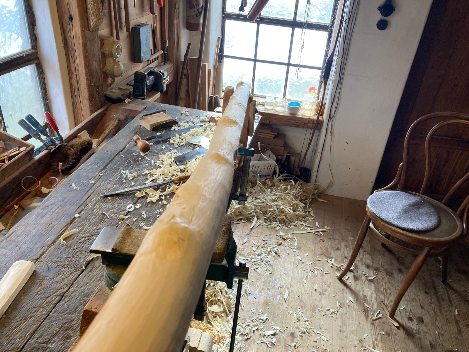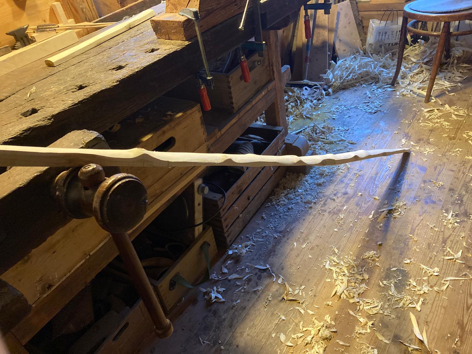 Hab heute den letzten Splintring vor dem Kernholz als Rückenring freigelegt. Wie befürchtet, sind je mehr ich mich dem Kernholz genähert habe, überwachsene Äste hervorgetreten. Insgesamt 8 Stück. Wenn ich nicht unter Beobachtung stehen würde, hätte ich mich wohl einem anderen Stave gewidmet ;) . Aber dieses Jahr gibts keinen Plan B.