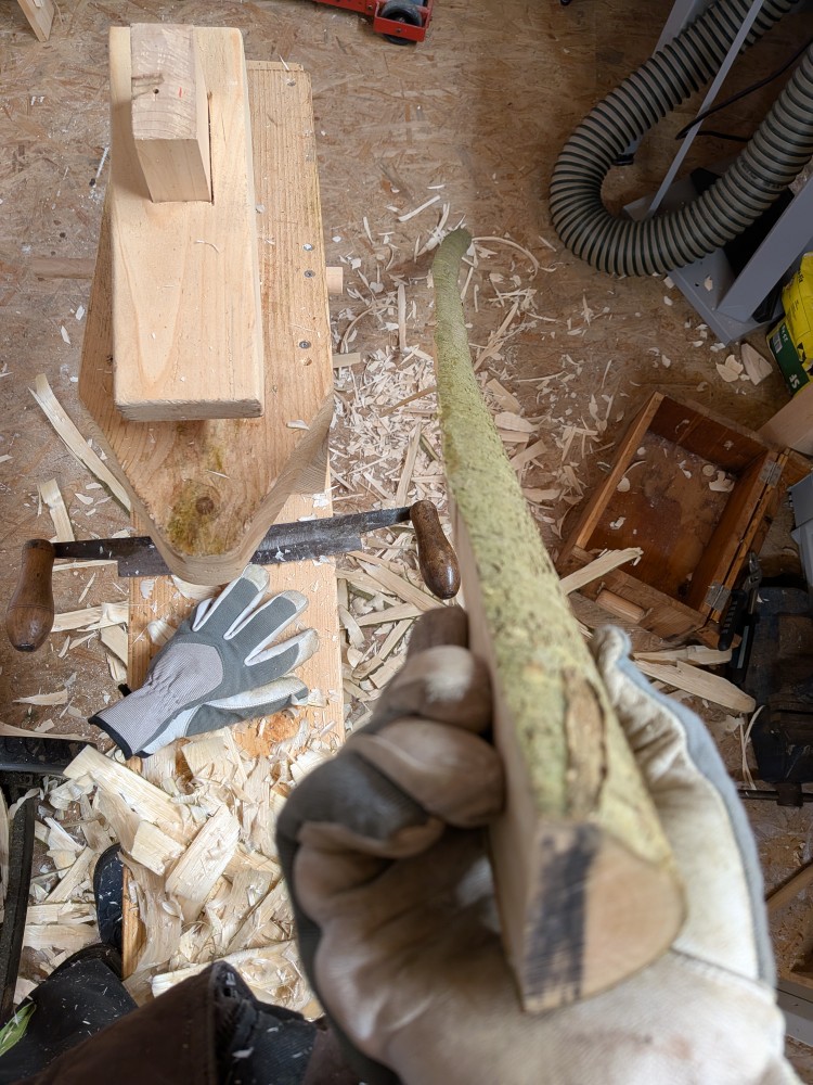 Dabei ist mir recht starker Drehwuchs aufgefallen, deswegen lasse ich ihn jetzt erstmal so trocknen, mal schauen ob er sich irgendwie verzieht.