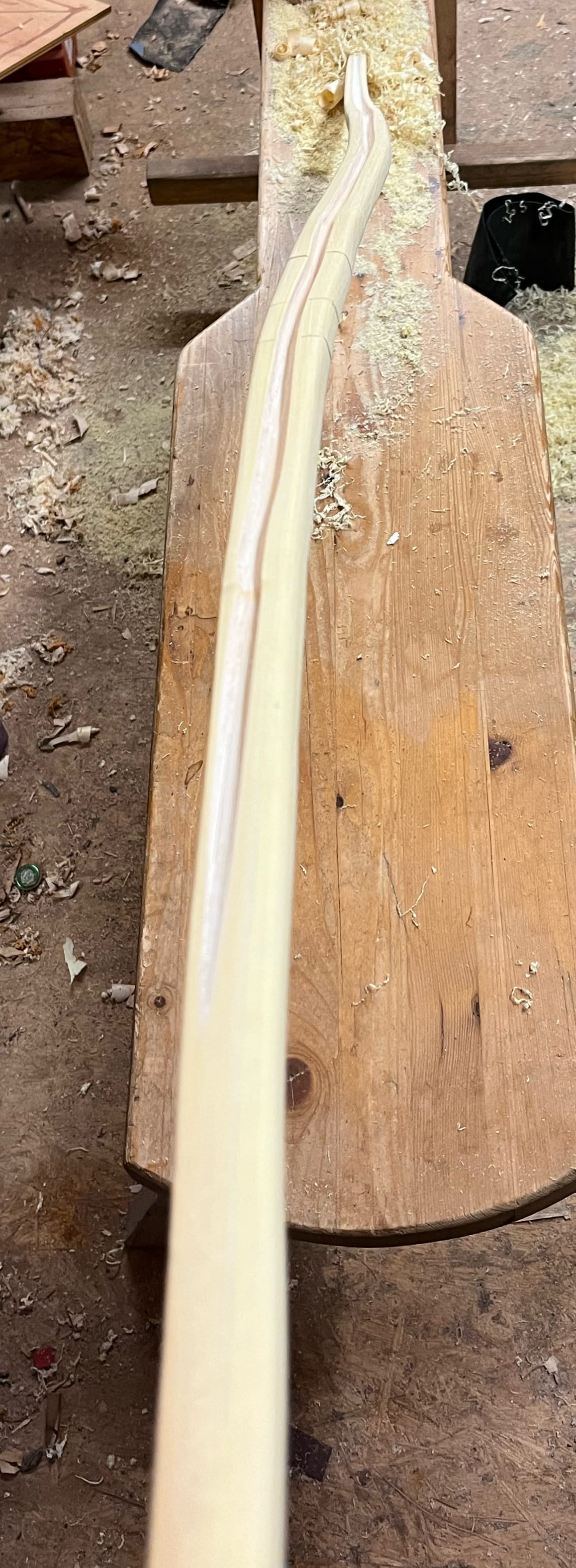 Netterweise hat der Stave so in etwa das gemacht, was ich mir vorgestellt hab, deswegen fällt die Ekelstelle raus (muss ja ::) ). Der Faserverlauf in der einen Nadel wird dank des Drehwuchses jetzt nicht soooo optimal, aber wir kleben da ja zum Glück noch was drauf :P