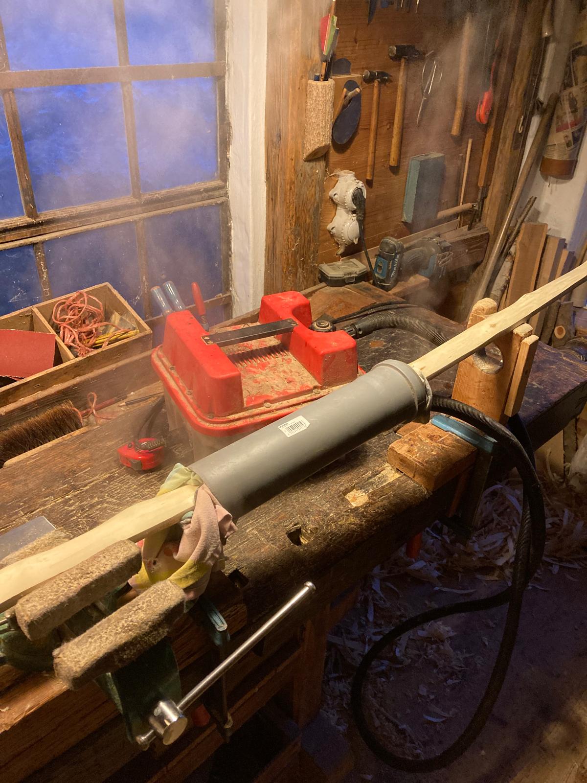 Mein alter Robinienbogen hat heuer den Geist aufgegeben und aus dem Stämmchen soll sein Nachfolger entstehen.