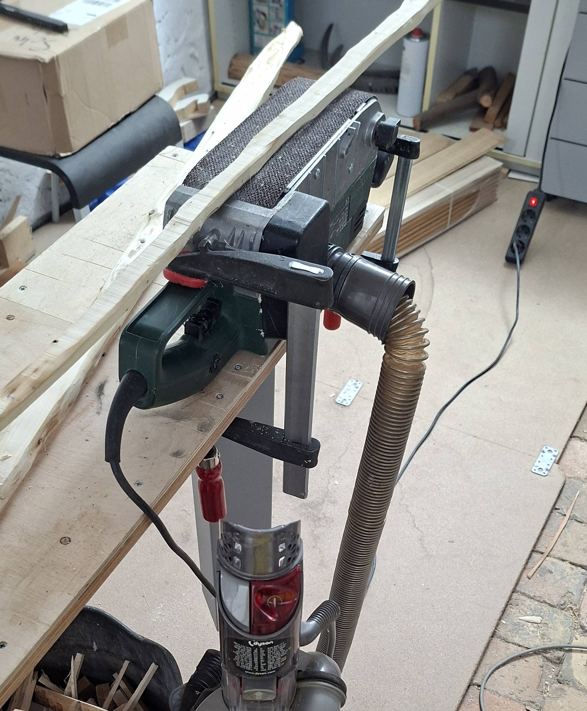 Außerdem habe ich heute Powerlam und Backing fertig geschnitten (Bandsäge) und geschliffen (Bandschleifer mit 40er und 60er Schleifmittel).