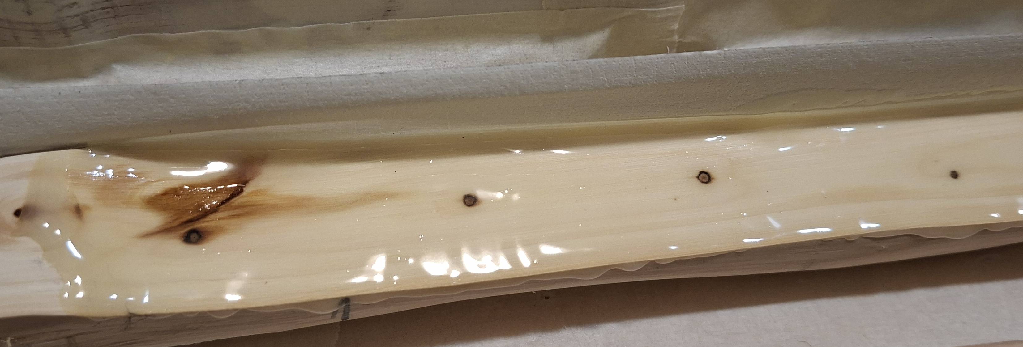 Danke, Klaus. Bis jetzt sieht das Holz noch ganz gut aus. Es federt gut. Demnächst wird mit einem Abfallstück die Dichte bestimmt und mal geprüft wie das Holz bricht.