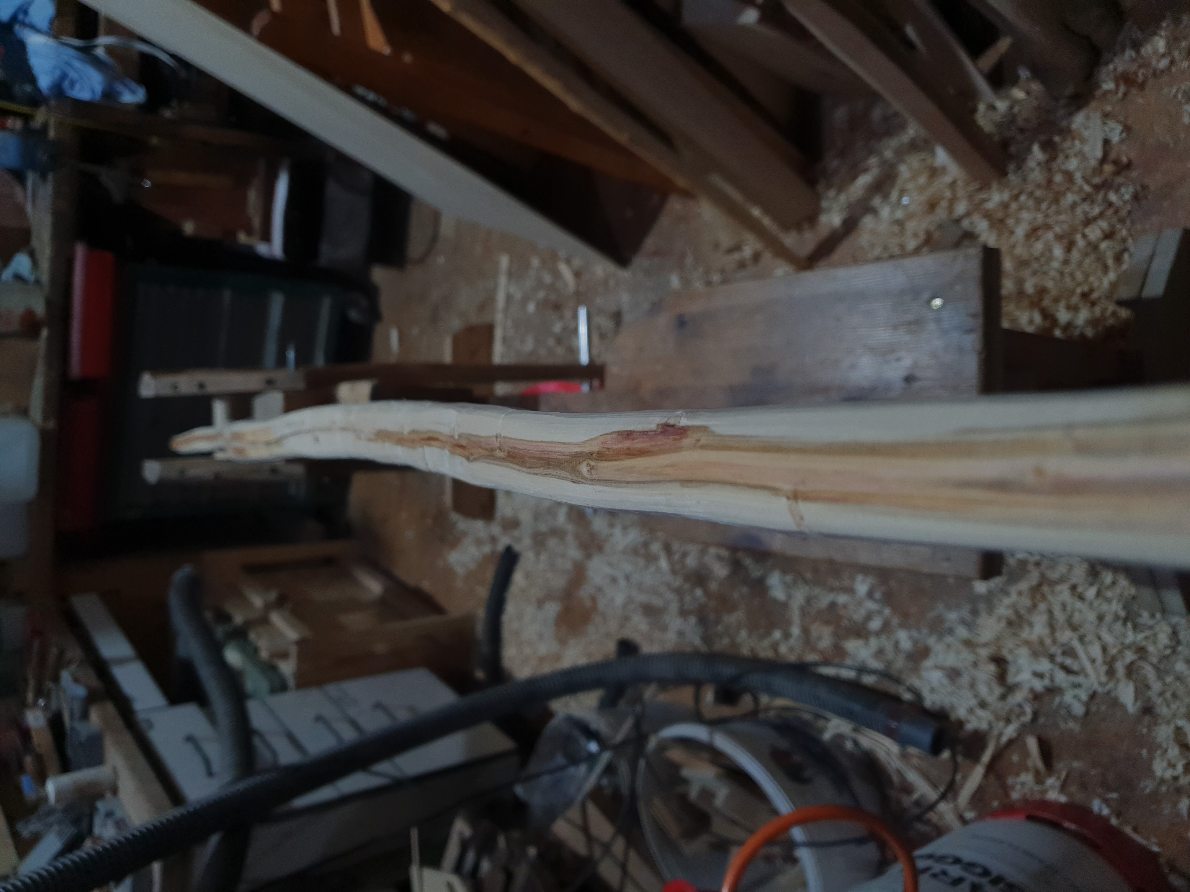 Von der Schlehe hab ich heut 300g Holz runtergeschitzt. Die sieht schon langsam wie ein Bogen aus.