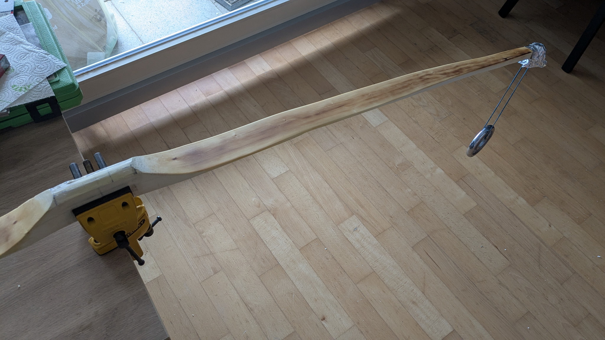Gestern hab ich nicht gemessen, jetzt hat er 61-62# @ 28". Tiller sieht zum glück unverändert aus. Jetzt noch eine sehne bauen, dann mal ein paar pfeile fliegen lassen