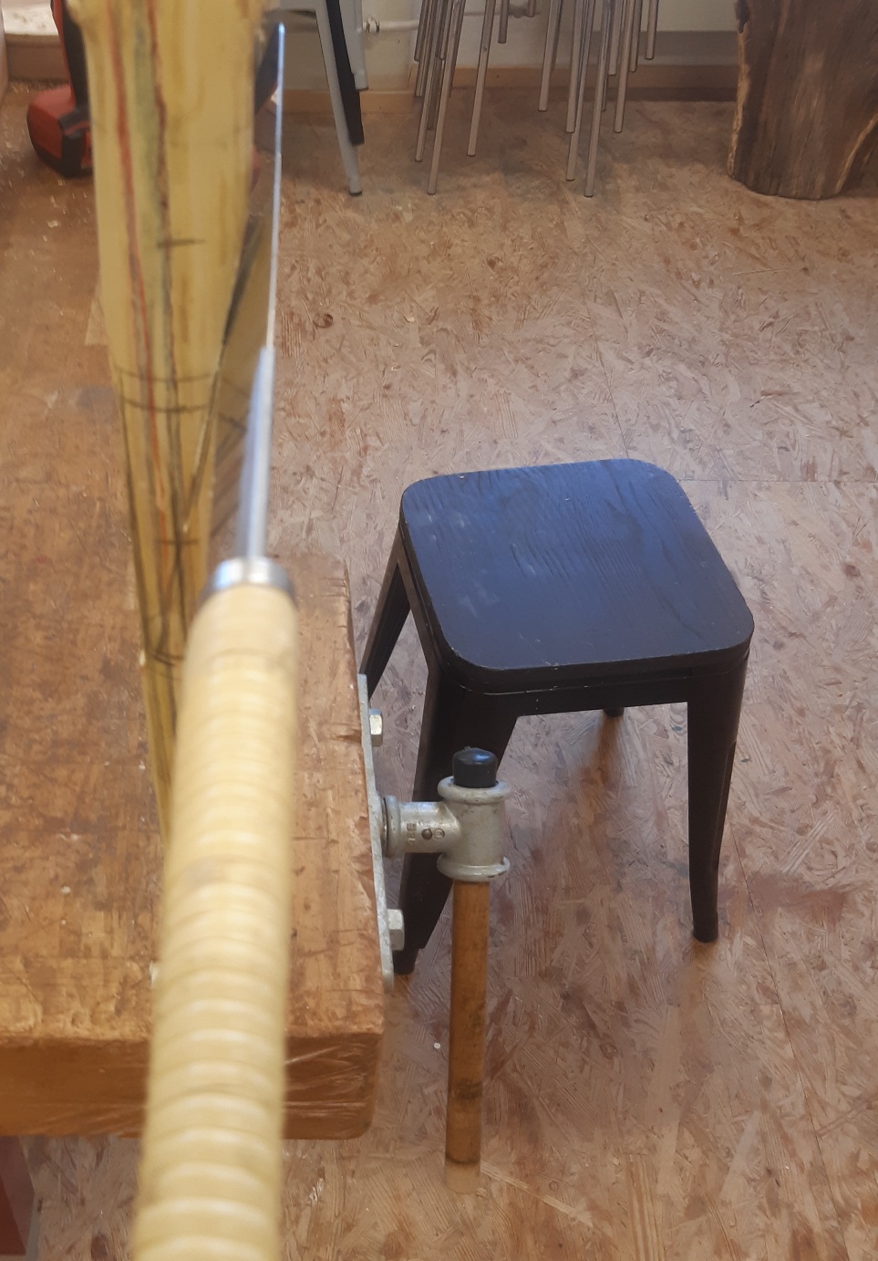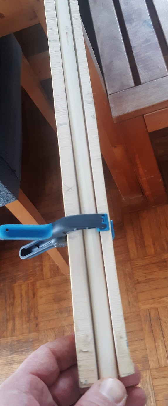 Versucht Holler2 mit der Hlp weit genug zu biegen ist gescheitert. Also den Aufbau zum biegen nochmal verändert und doch noch mal mit Dampf. Bei den Enden geht es mit Abstand zwischen Alufolie und Holz. Allerdings wohl etwas viel Biegung gewollt.