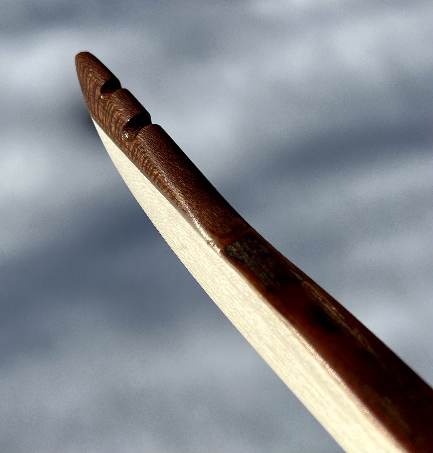 Der blanke Bogen wog 220g, also ohne Leder, Fell und Sehne.