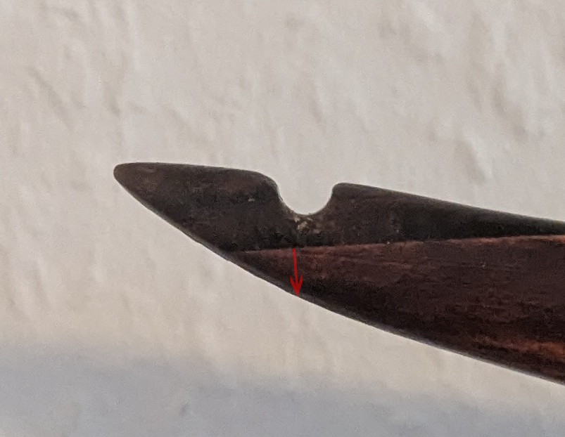 Mein Bogenbauerknoten hat an der unteten Seite leichte Druckspuren am Holz hinterlassen, an der Nocke nicht.