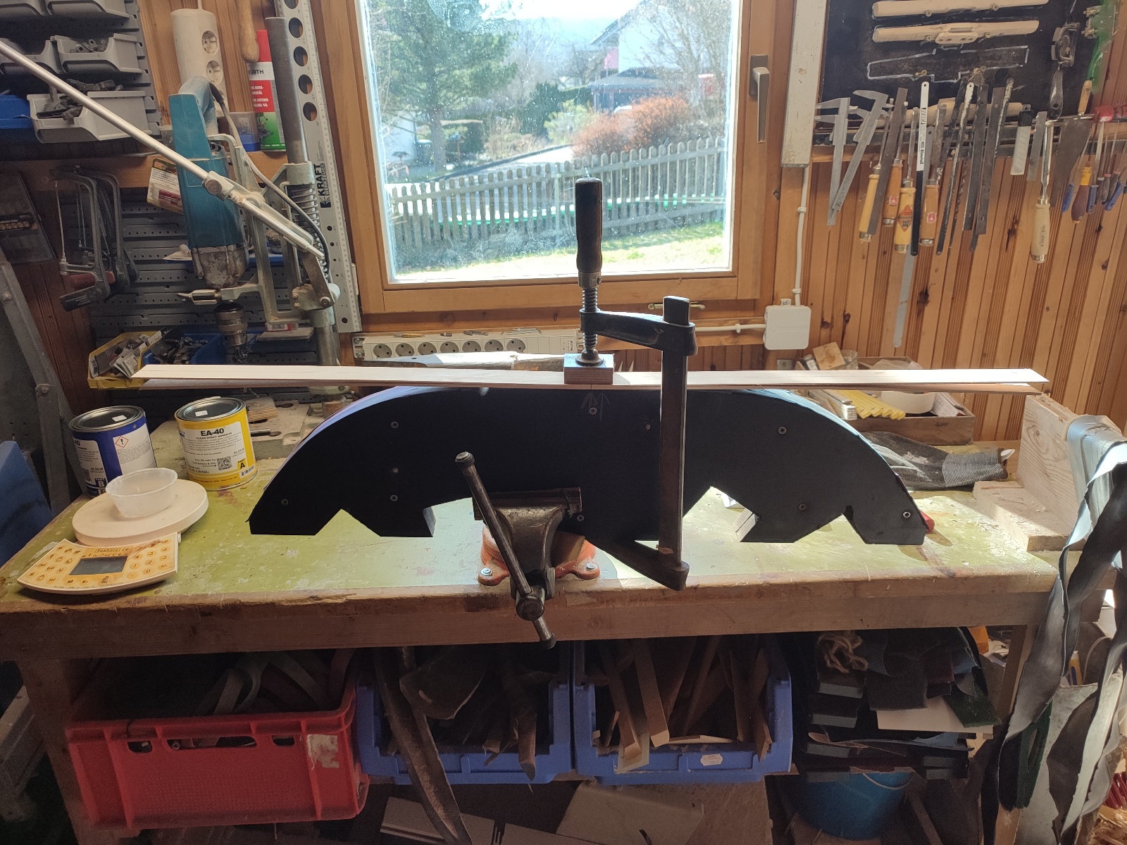 Ich werde ihn aber anders aufbauen als die letzten Male. Ich werde keinen Kasanwinkel drin haben , sondern einen durchgehen Radius. Außerdem verwende ich das erste mal Smooth On .Der Aufbau des Rahmen Erfolg durch 2 Ahorn Laminate mit der Stärke von ca. 6,5mm + Horn ca 5mm und 3mm ergibt eine gesammt Stärke von 14mm.
