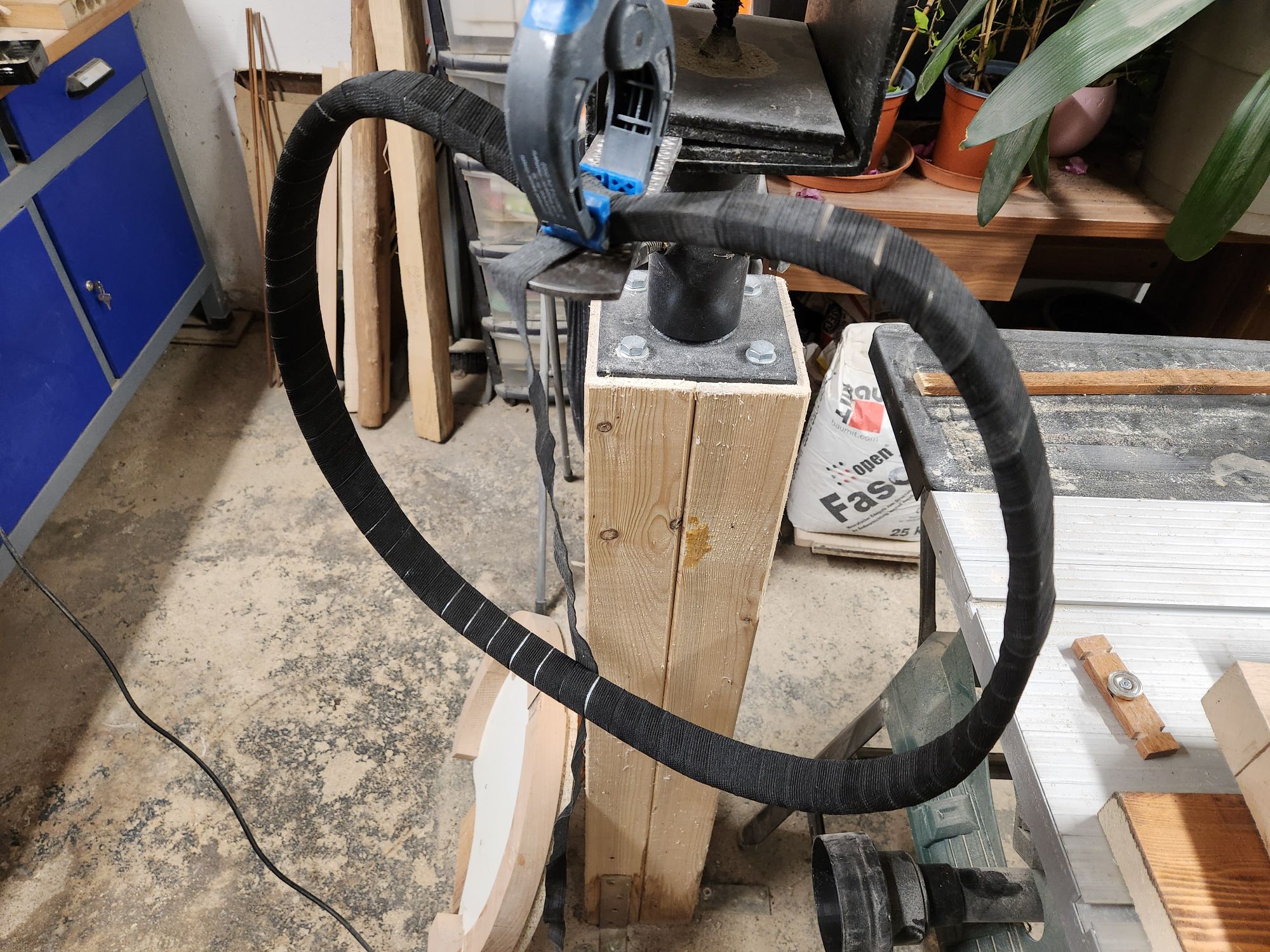 Bin auf Nummer sicher gegangen. Kleber nochmal angeheizt, drunter gespritzt, wieder gewickelt und nochmal auf der Platte angewärmt. Jetzt bleibts mal über Nacht gewickelt.