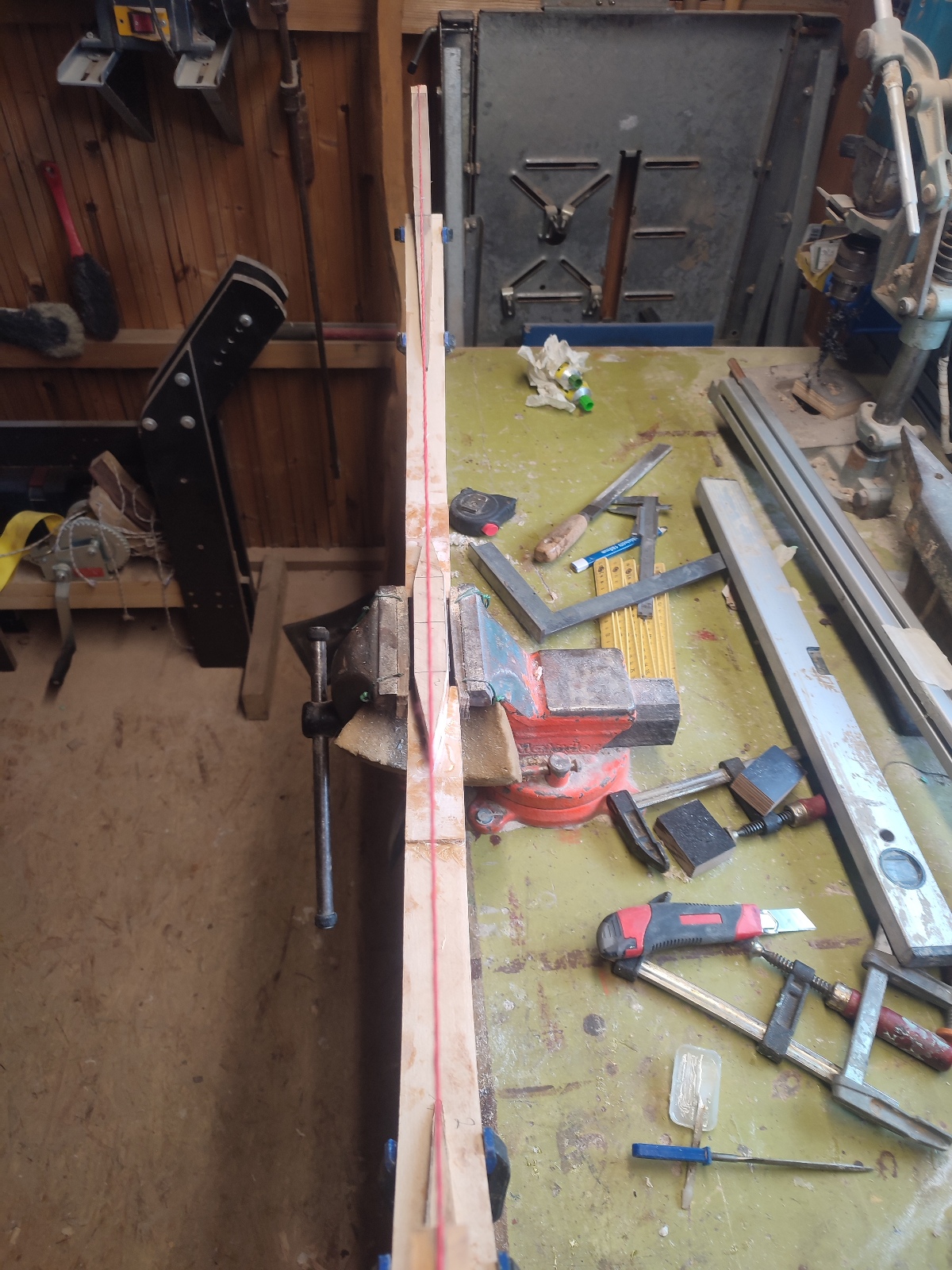 Da brauchst aber noch einen seitlichen Anschlag, sonst passt's ueber die Laenge irgendwo nicht, oder?Hieronymus hat geschrieben: ↑03.04.2026, 14:22 Worauf ich mich bei diesem Bogen freue...ich habe mir aus der Türkei dieses Tool mit bringen lassen. Damit werde ich dem Flightbogen eine gewölbte Klebefuge verpassen und ich brauche nicht darüber nachdenken, ob die Fugen aufeinender passen, denn sie sind schon versetzt angefertigt worden.