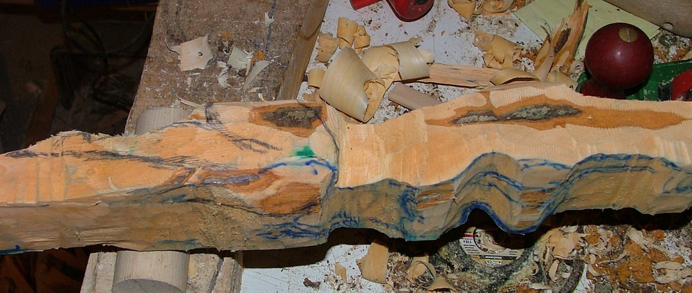 - den Bauch ganz grob ausgeschnitten (Bandsäge)